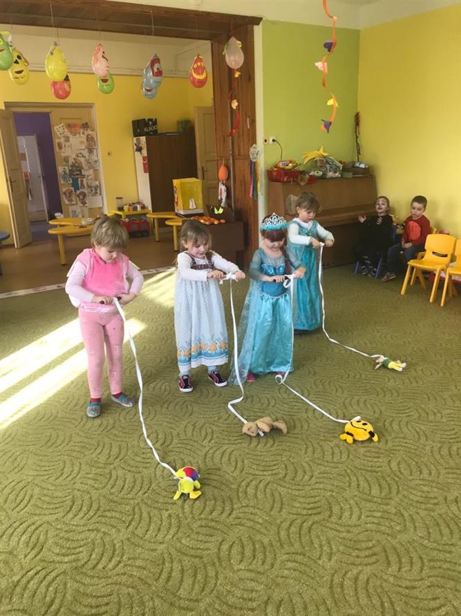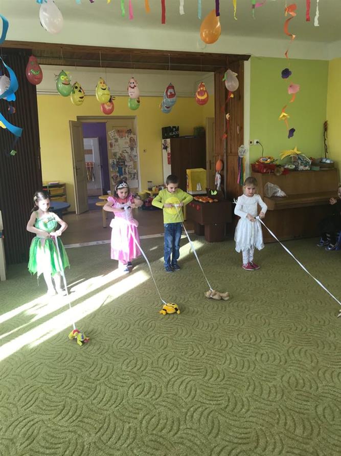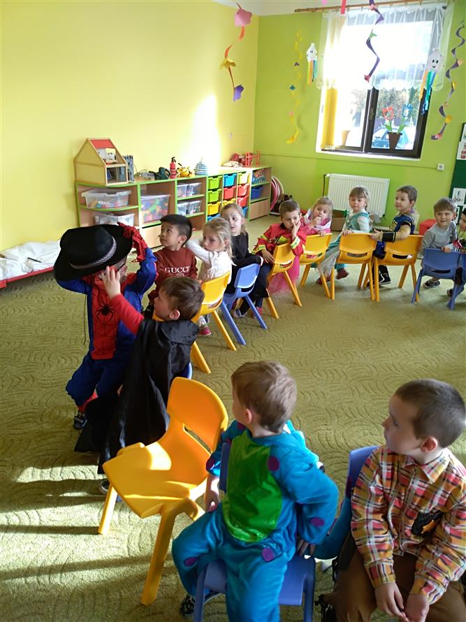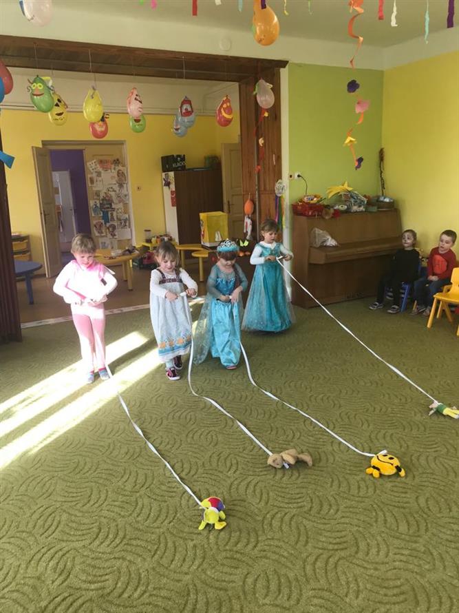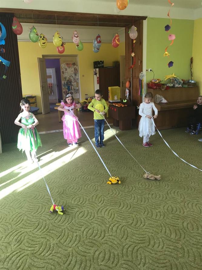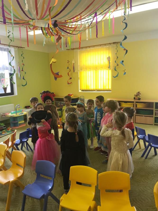 Děti si krásně s paní učitelkou a Pavlínkou vyzdobili třídu, za což mají velký dík a pochvalu! Výzdoba je krásně jarní a barevná, proto jsme ji zachovali i dál. Děti si karneval užili, po přehlídce v maskách se soutěžilo a každý dostal odměnu za svojí chuť do hry.