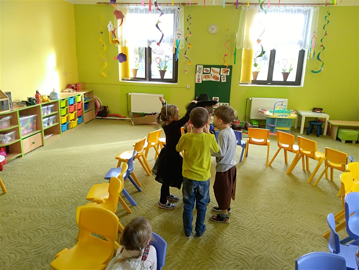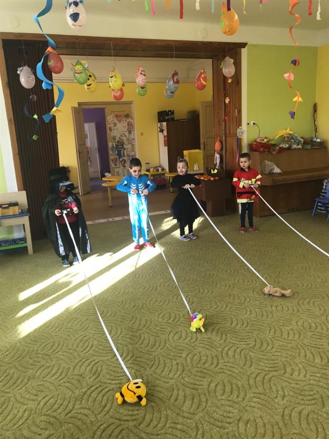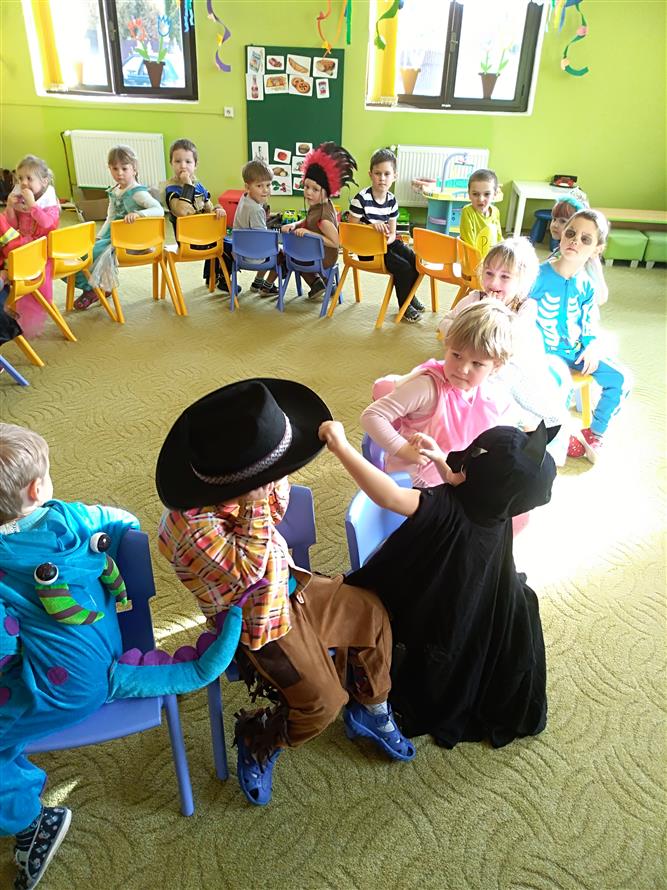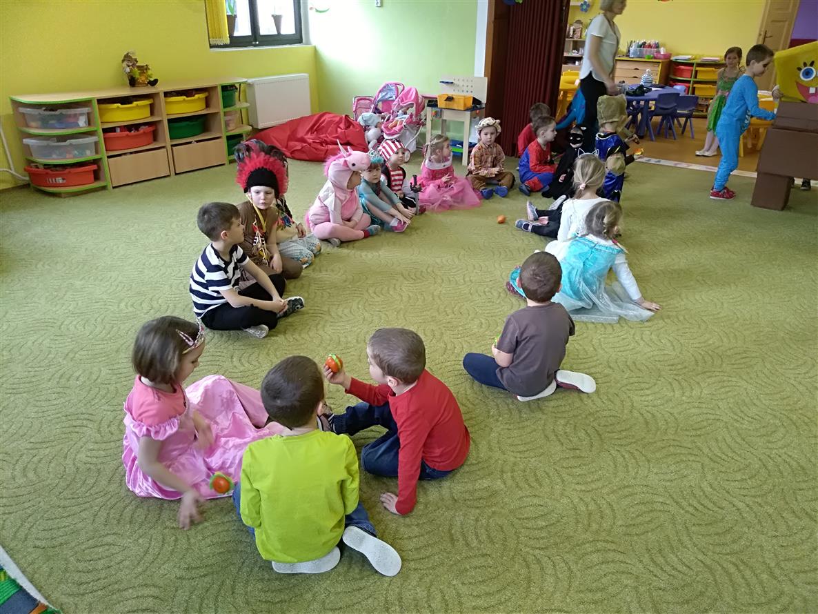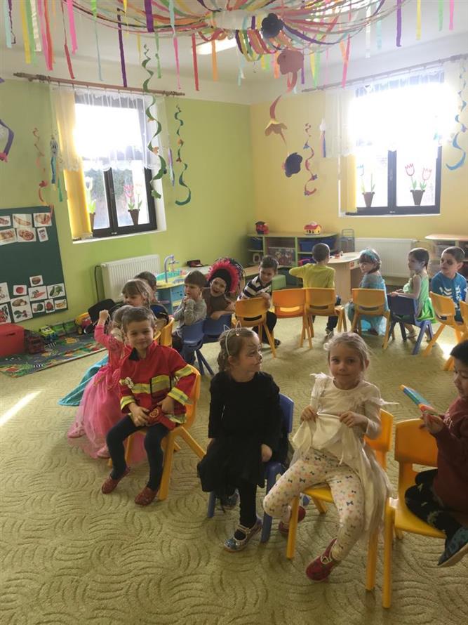 Děti si krásně s paní učitelkou a Pavlínkou vyzdobili třídu, za což mají velký dík a pochvalu! Výzdoba je krásně jarní a barevná, proto jsme ji zachovali i dál. Děti si karneval užili, po přehlídce v maskách se soutěžilo a každý dostal odměnu za svojí chuť do hry.
