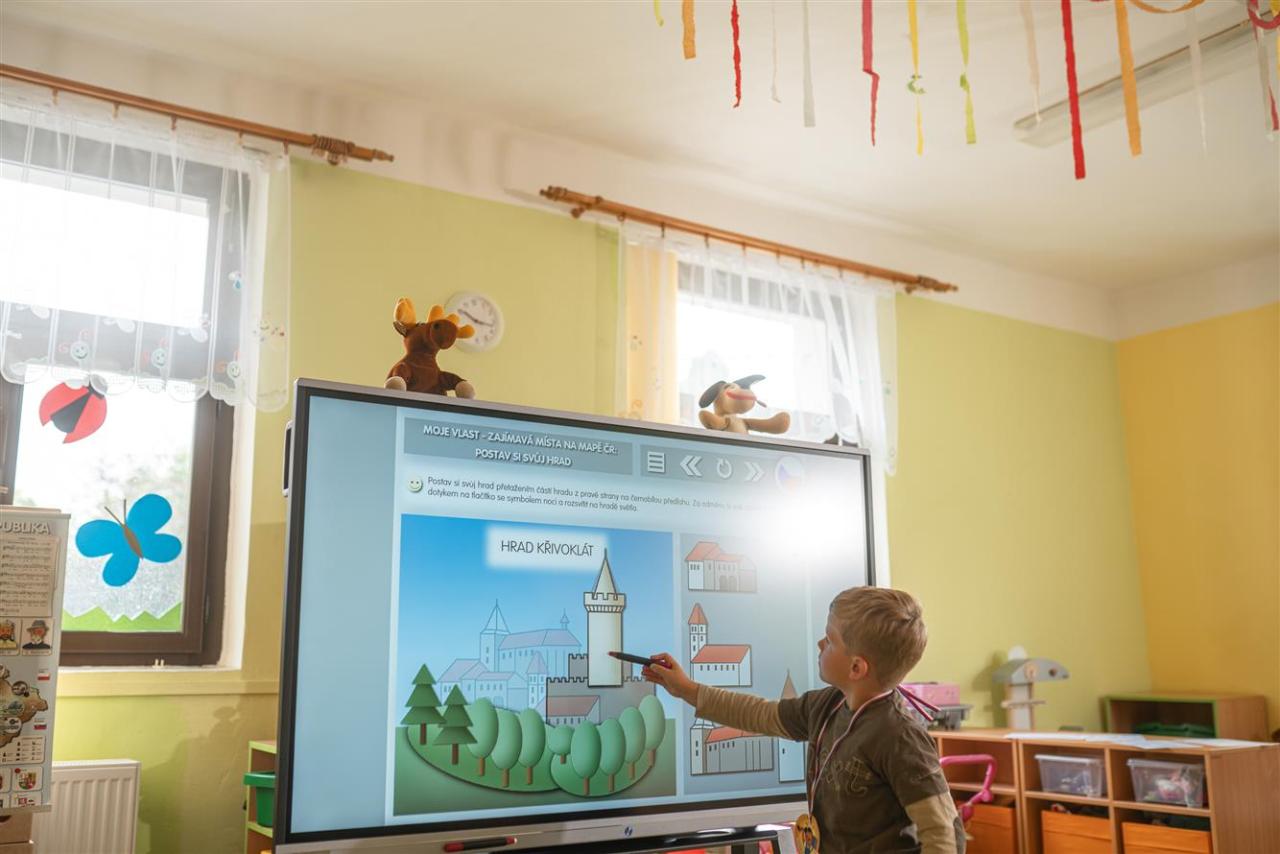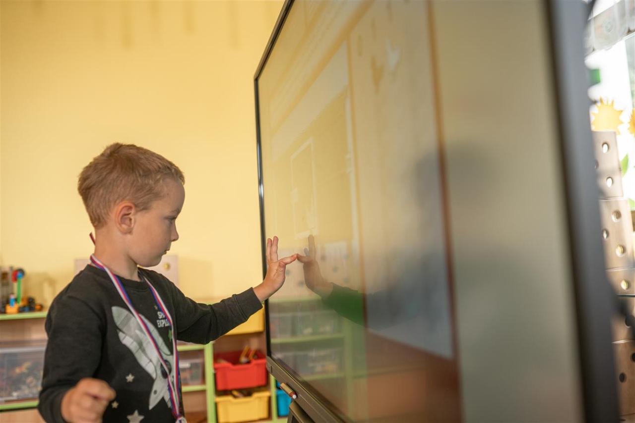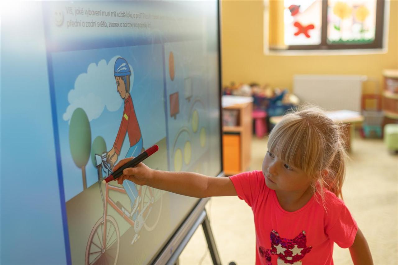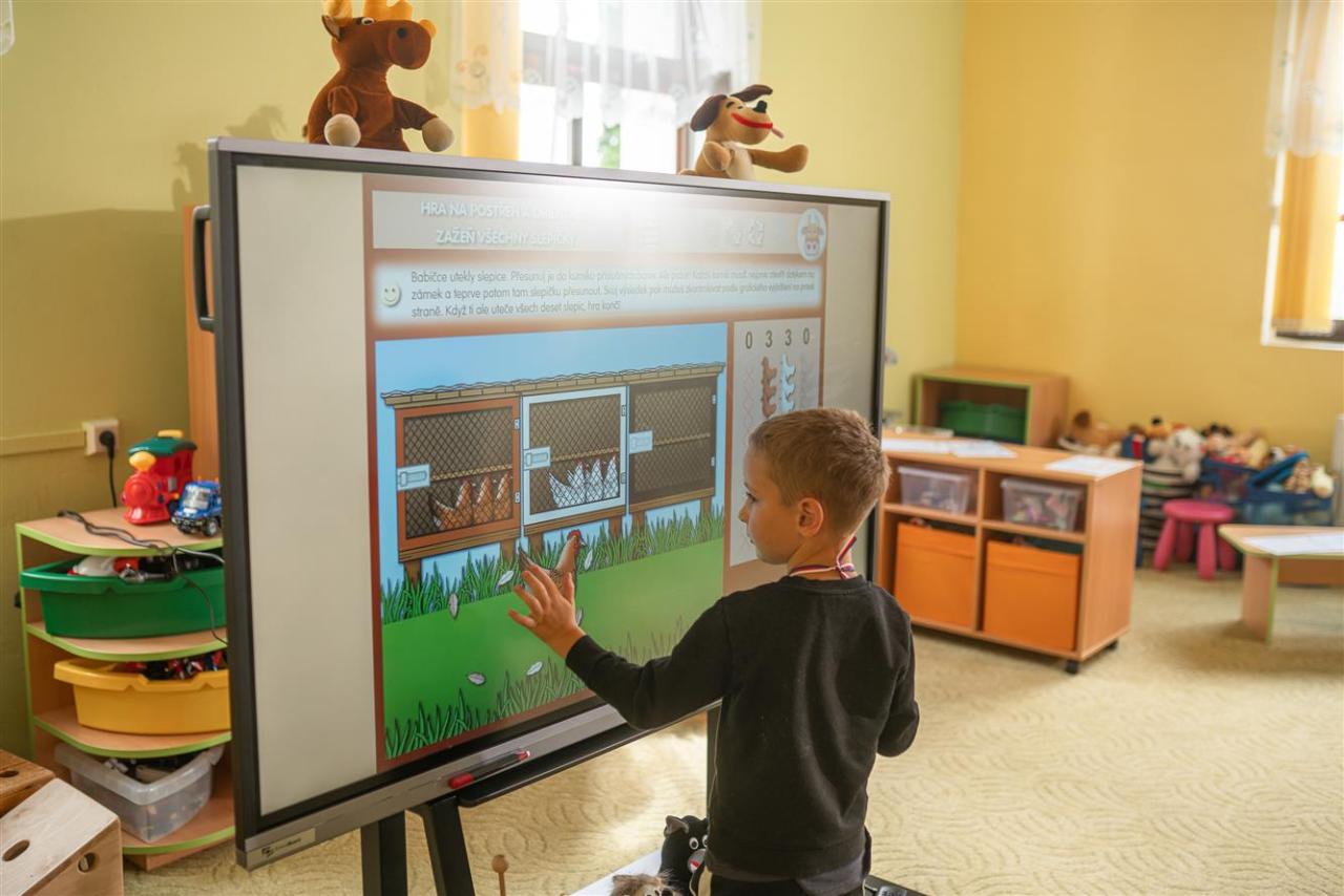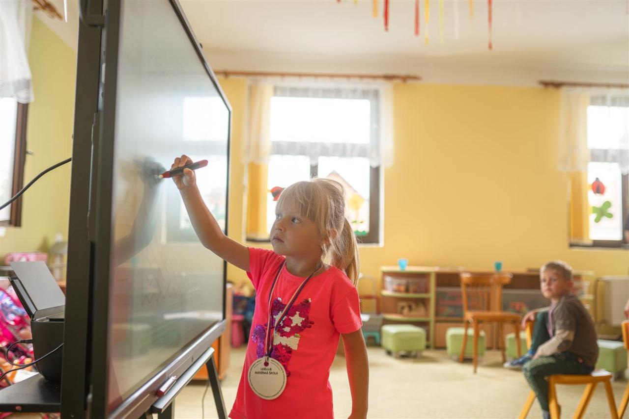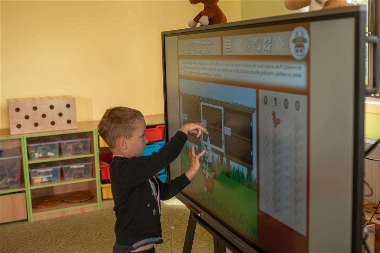 Protože jsme pracovali na nové interaktivní tabuli Multiboard, kterou jsme pořídili do MŠ. Děti si na ní procvičí zrakové a sluchové vnímání, pravolevou orientaci, procvičí si matematickou a čtenářskou pregramotnost a také si mohou na velké tabuli volně kreslit. Jejich výtvory můžeme i vytisknout a mohou sí je nechat na památku. Práce s tabulí je zanesena ve vzdělávacím programu MŠ jednou týdně a to v rámci digitálního vzdělávání.
