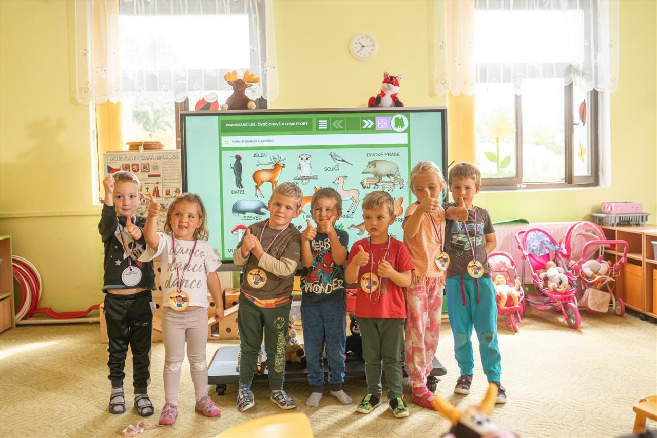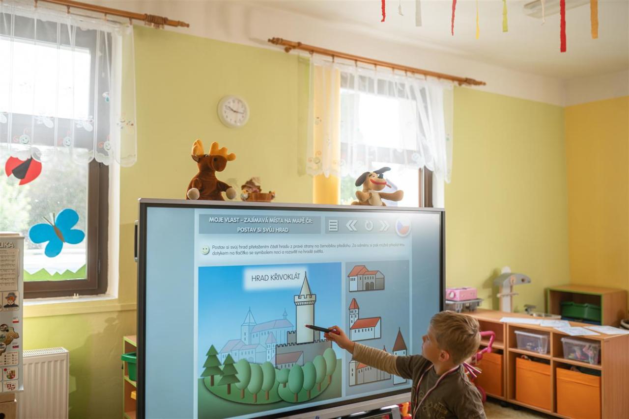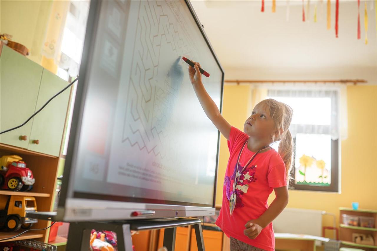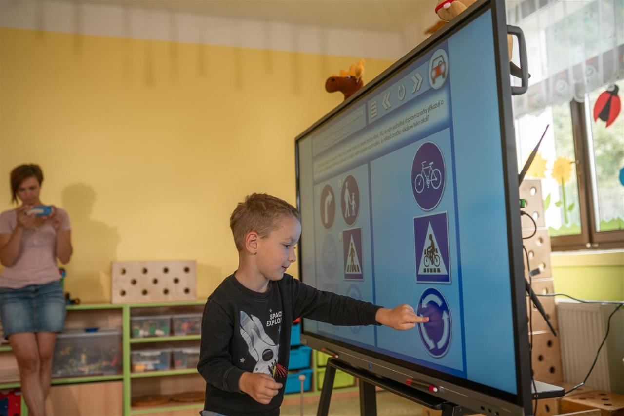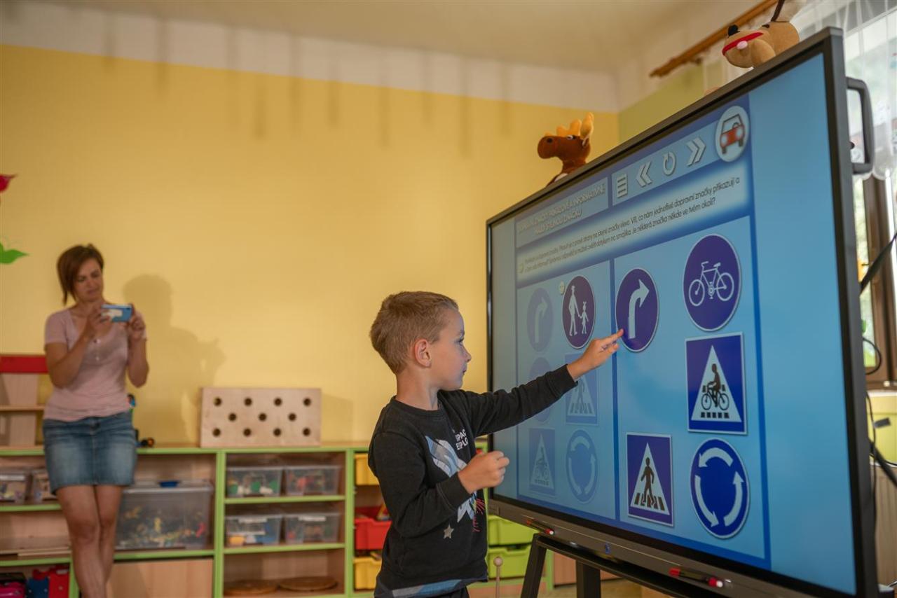Protože jsme pracovali na nové interaktivní tabuli Multiboard, kterou jsme pořídili do MŠ. Děti si na ní procvičí zrakové a sluchové vnímání, pravolevou orientaci, procvičí si matematickou a čtenářskou pregramotnost a také si mohou na velké tabuli volně kreslit. Jejich výtvory můžeme i vytisknout a mohou sí je nechat na památku. Práce s tabulí je zanesena ve vzdělávacím programu MŠ jednou týdně a to v rámci digitálního vzdělávání.