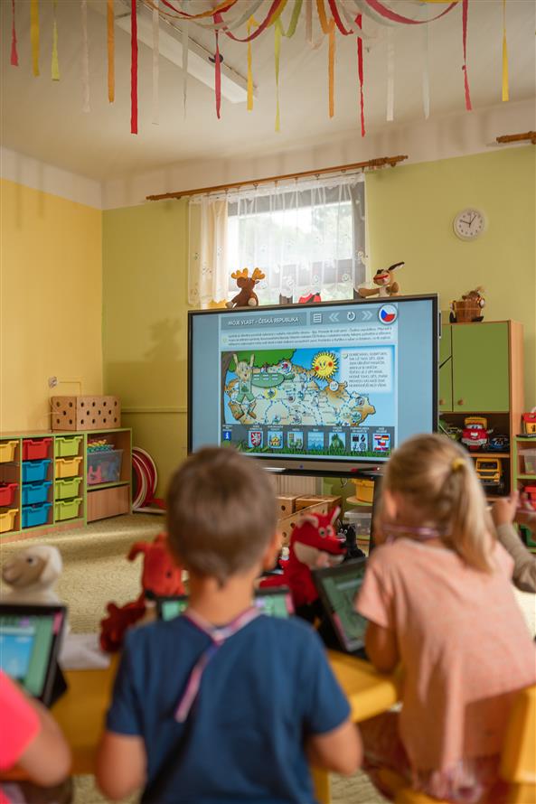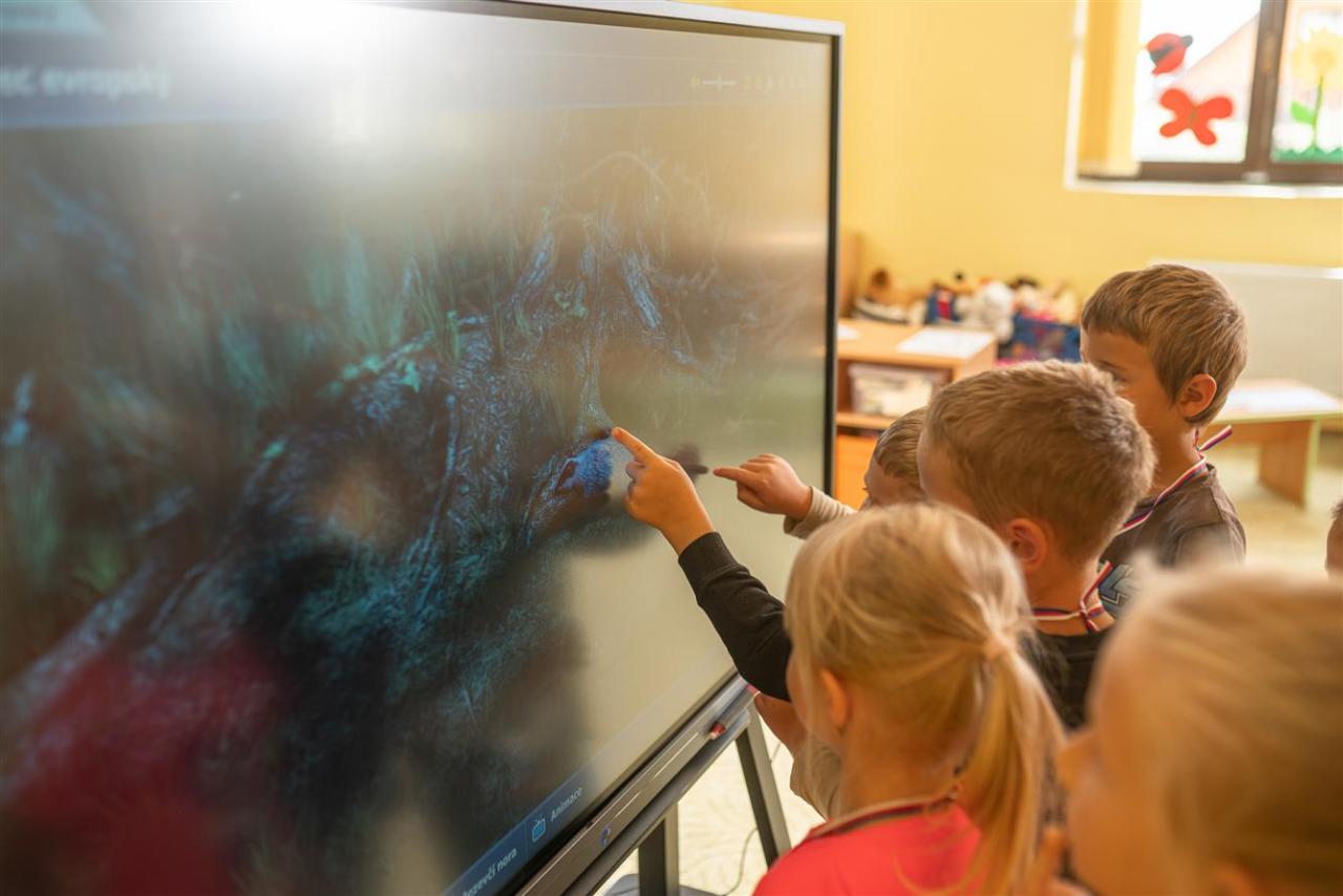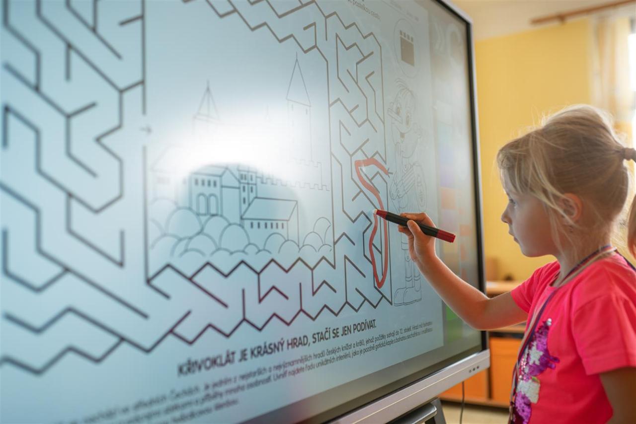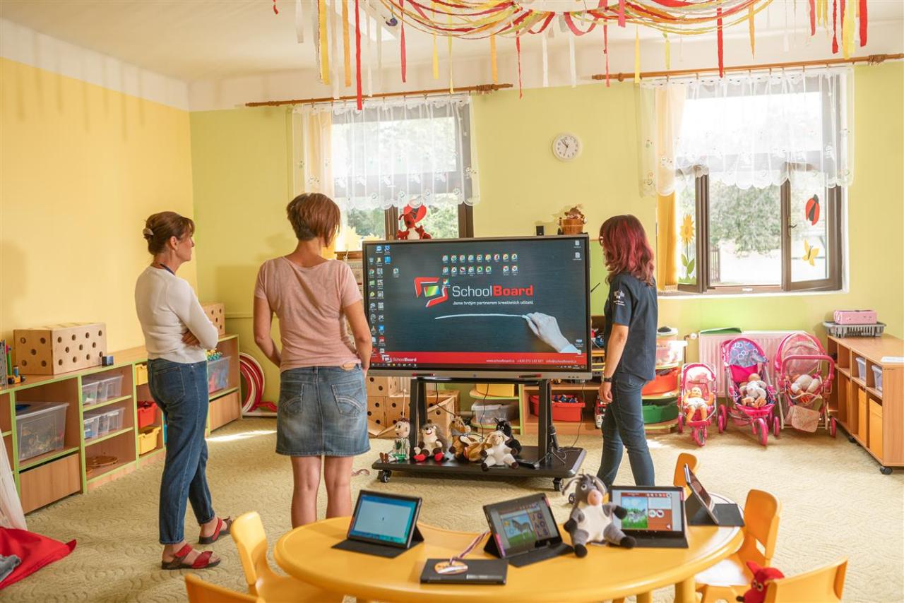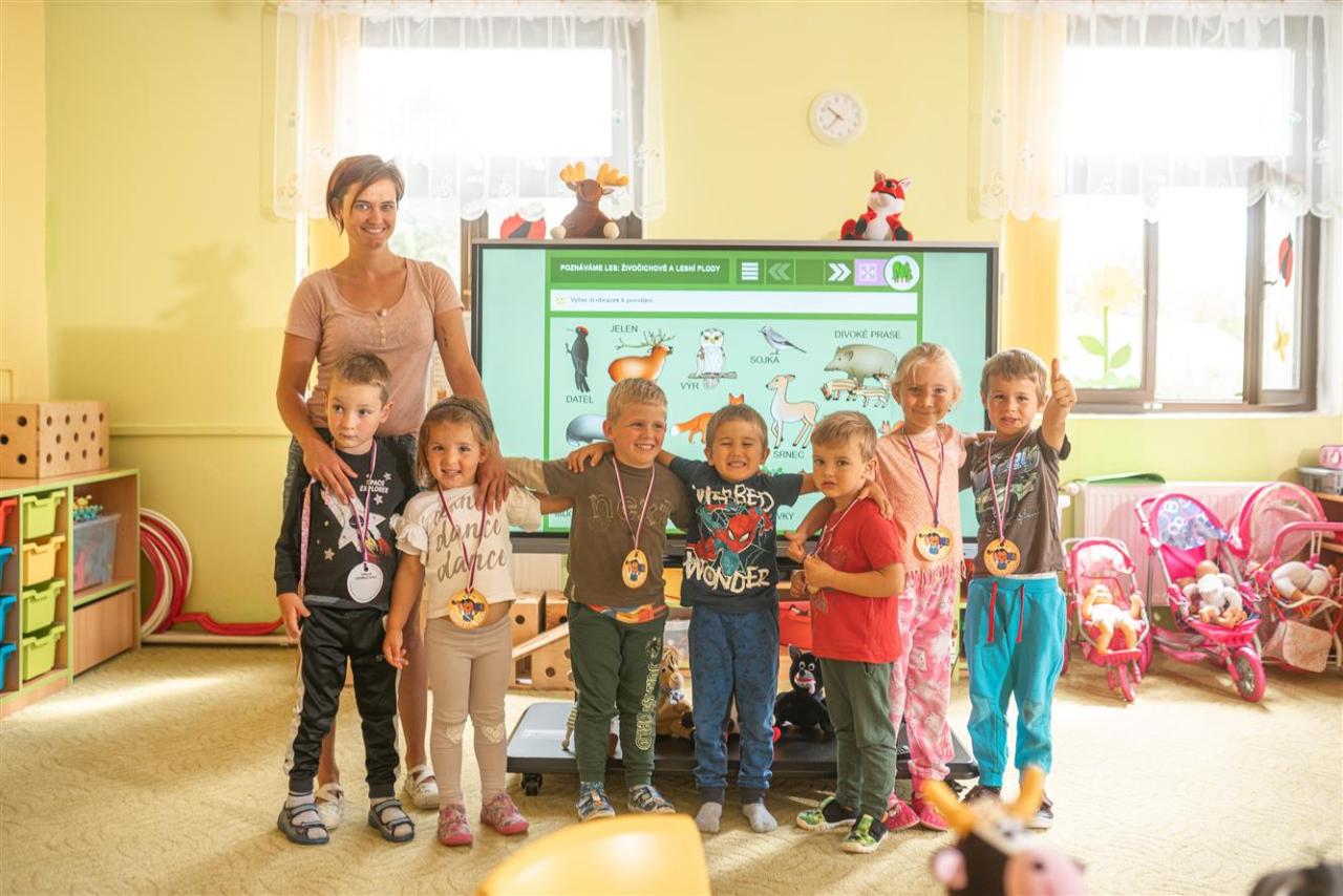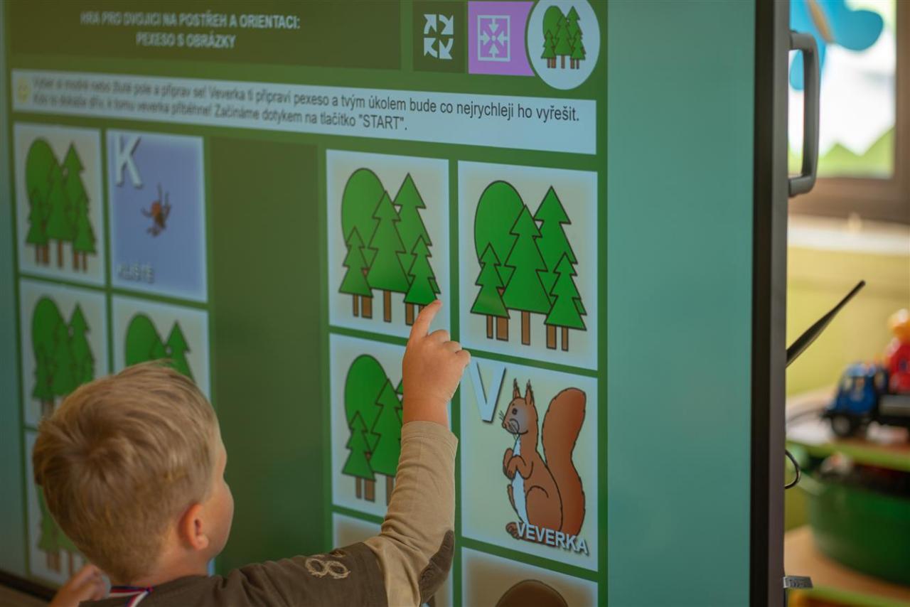 Protože jsme pracovali na nové interaktivní tabuli Multiboard, kterou jsme pořídili do MŠ. Děti si na ní procvičí zrakové a sluchové vnímání, pravolevou orientaci, procvičí si matematickou a čtenářskou pregramotnost a také si mohou na velké tabuli volně kreslit. Jejich výtvory můžeme i vytisknout a mohou sí je nechat na památku. Práce s tabulí je zanesena ve vzdělávacím programu MŠ jednou týdně a to v rámci digitálního vzdělávání.