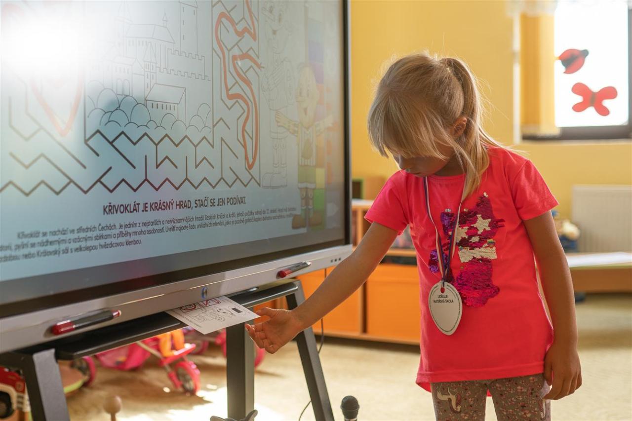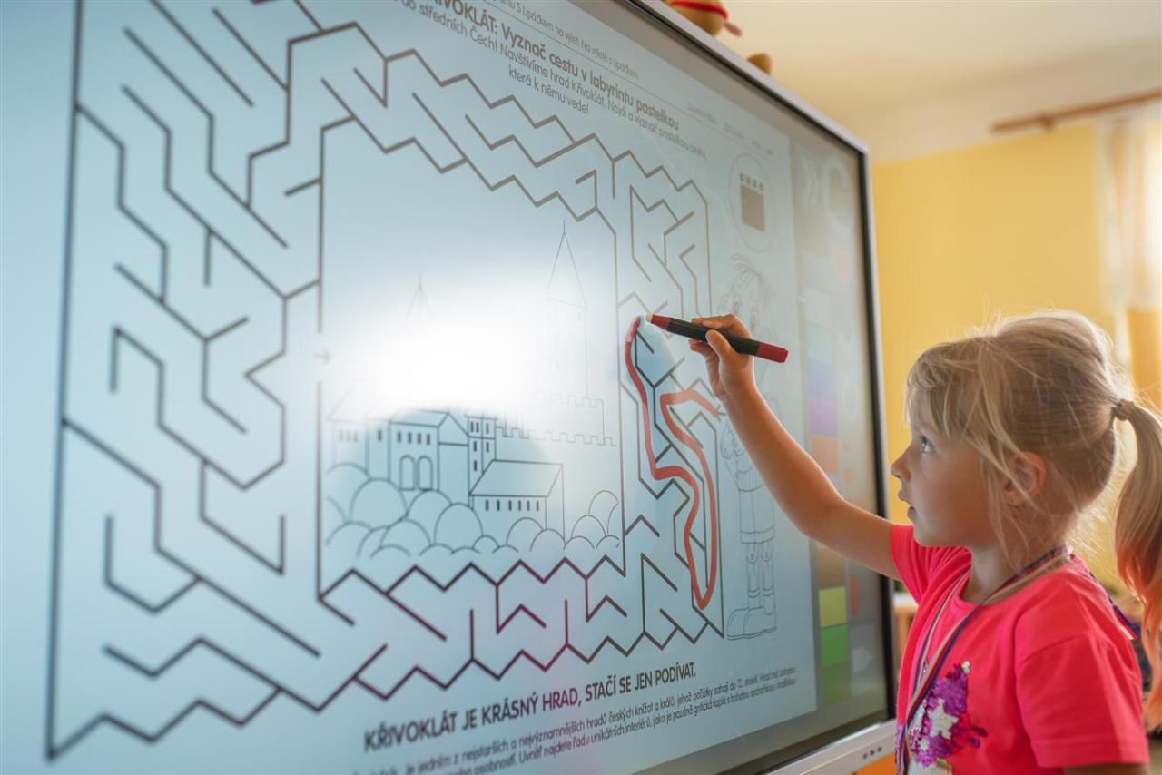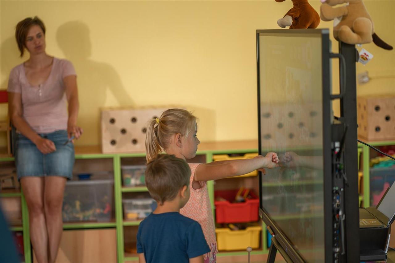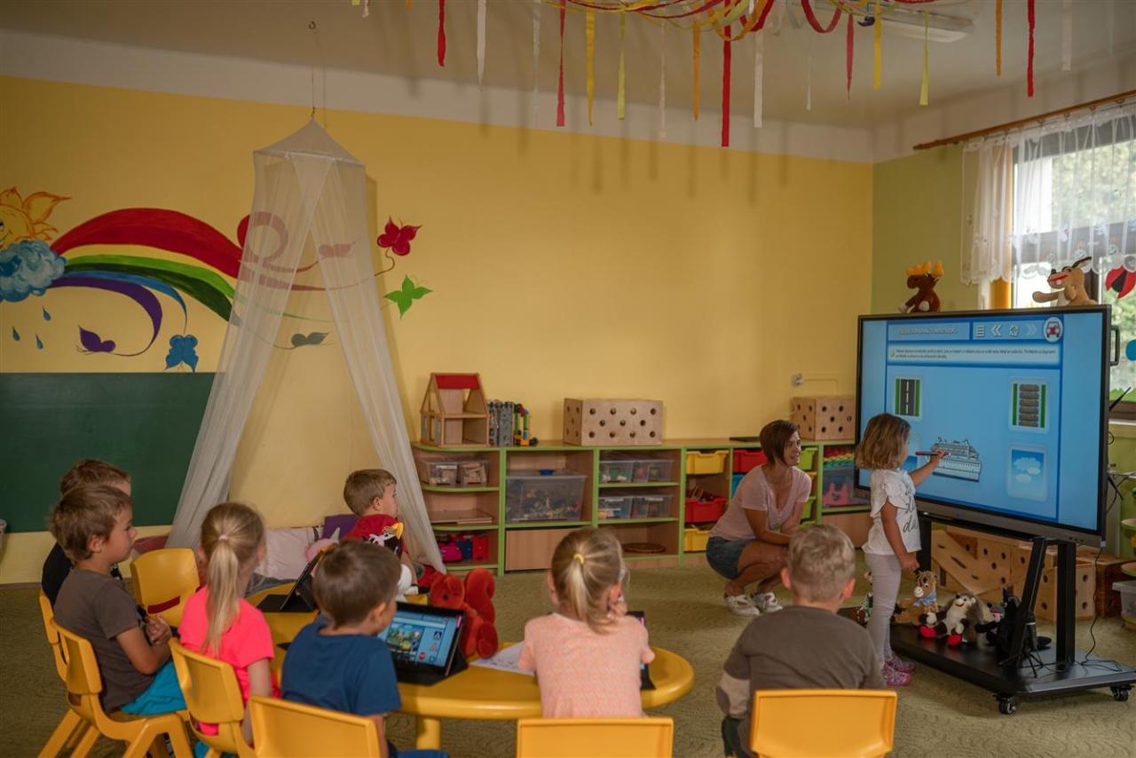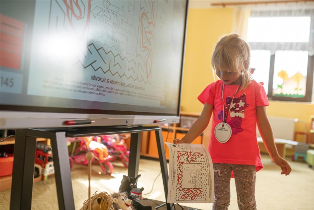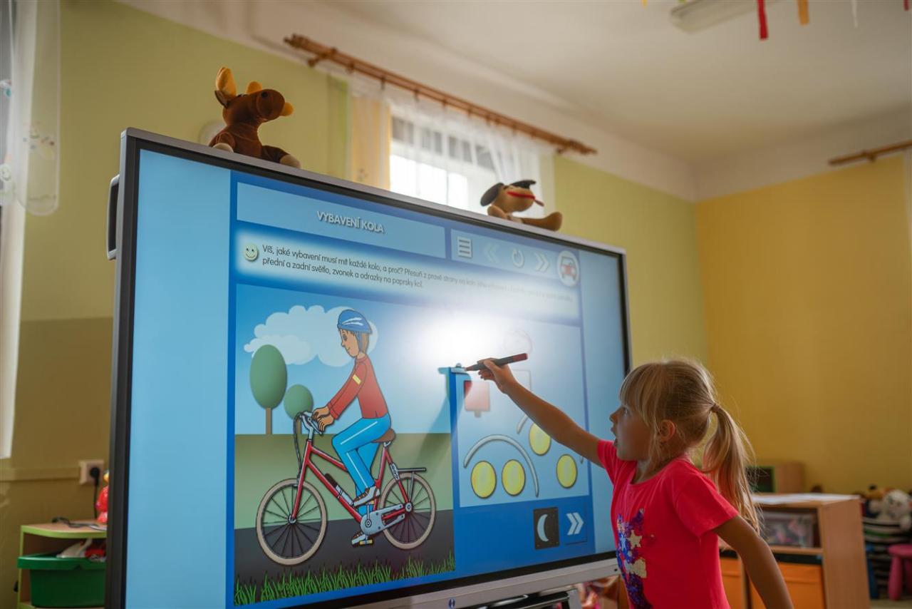 Protože jsme pracovali na nové interaktivní tabuli Multiboard, kterou jsme pořídili do MŠ. Děti si na ní procvičí zrakové a sluchové vnímání, pravolevou orientaci, procvičí si matematickou a čtenářskou pregramotnost a také si mohou na velké tabuli volně kreslit. Jejich výtvory můžeme i vytisknout a mohou sí je nechat na památku. Práce s tabulí je zanesena ve vzdělávacím programu MŠ jednou týdně a to v rámci digitálního vzdělávání.