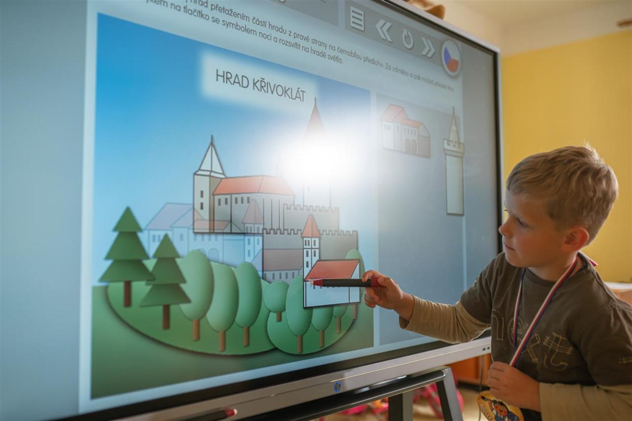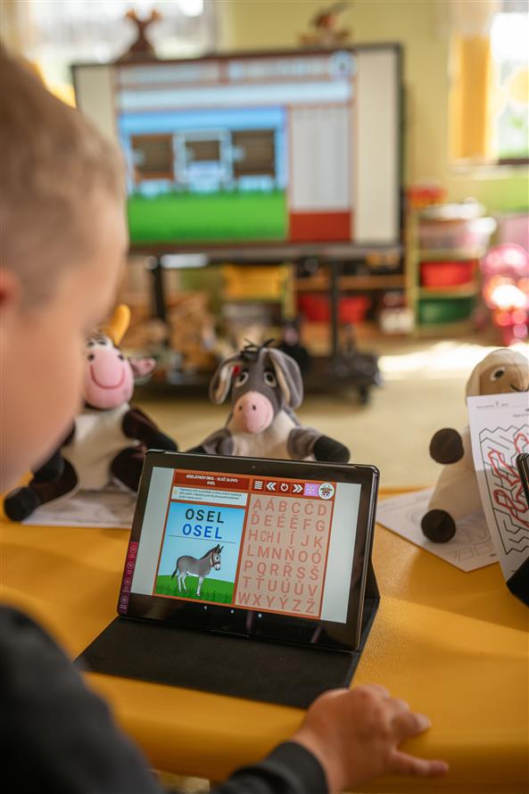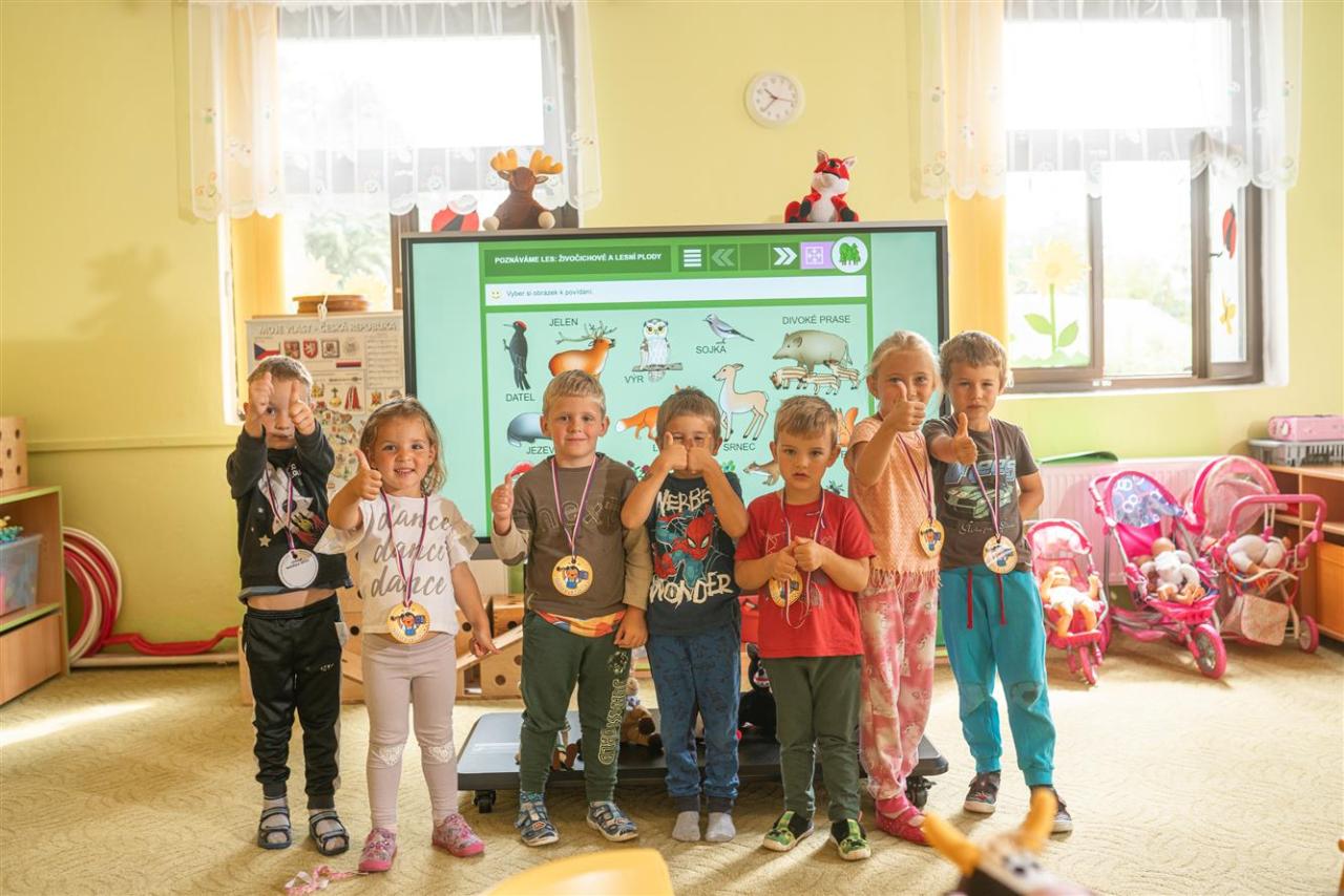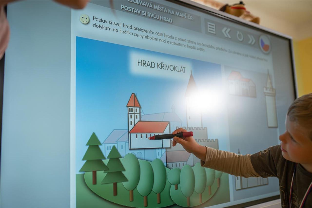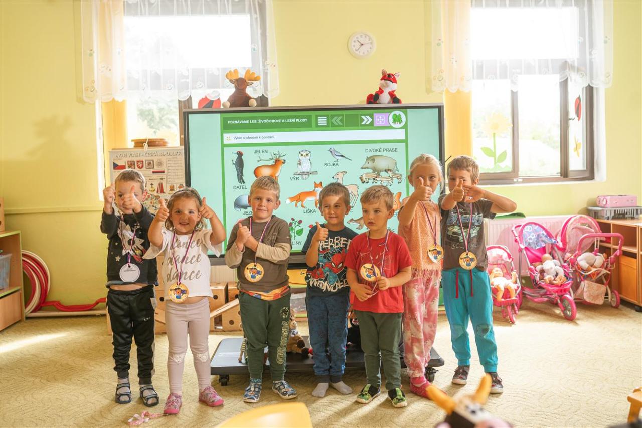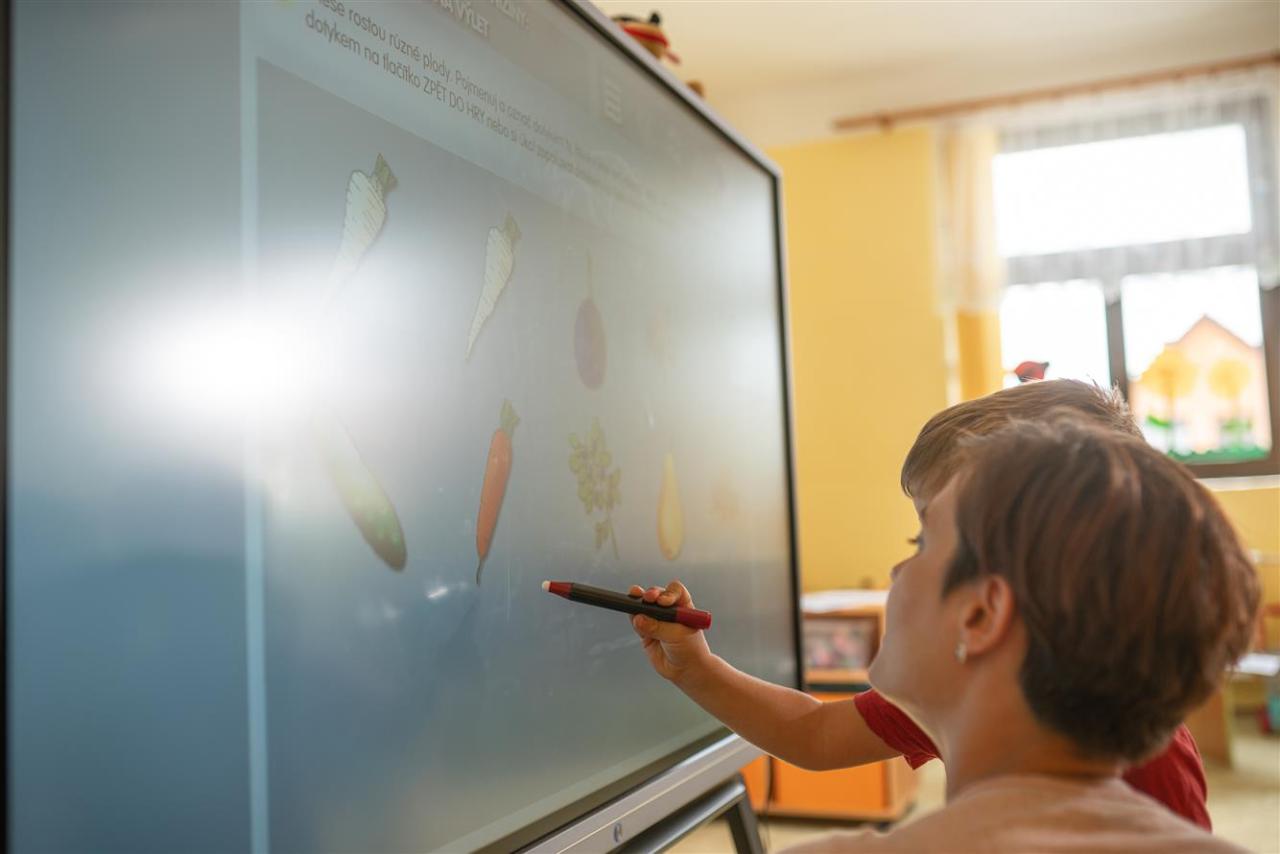 Protože jsme pracovali na nové interaktivní tabuli Multiboard, kterou jsme pořídili do MŠ. Děti si na ní procvičí zrakové a sluchové vnímání, pravolevou orientaci, procvičí si matematickou a čtenářskou pregramotnost a také si mohou na velké tabuli volně kreslit. Jejich výtvory můžeme i vytisknout a mohou sí je nechat na památku. Práce s tabulí je zanesena ve vzdělávacím programu MŠ jednou týdně a to v rámci digitálního vzdělávání.