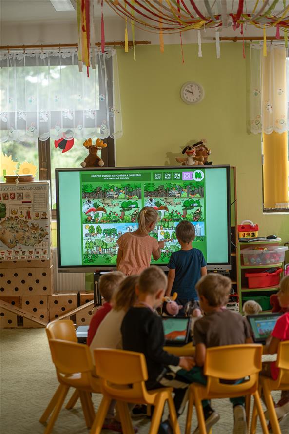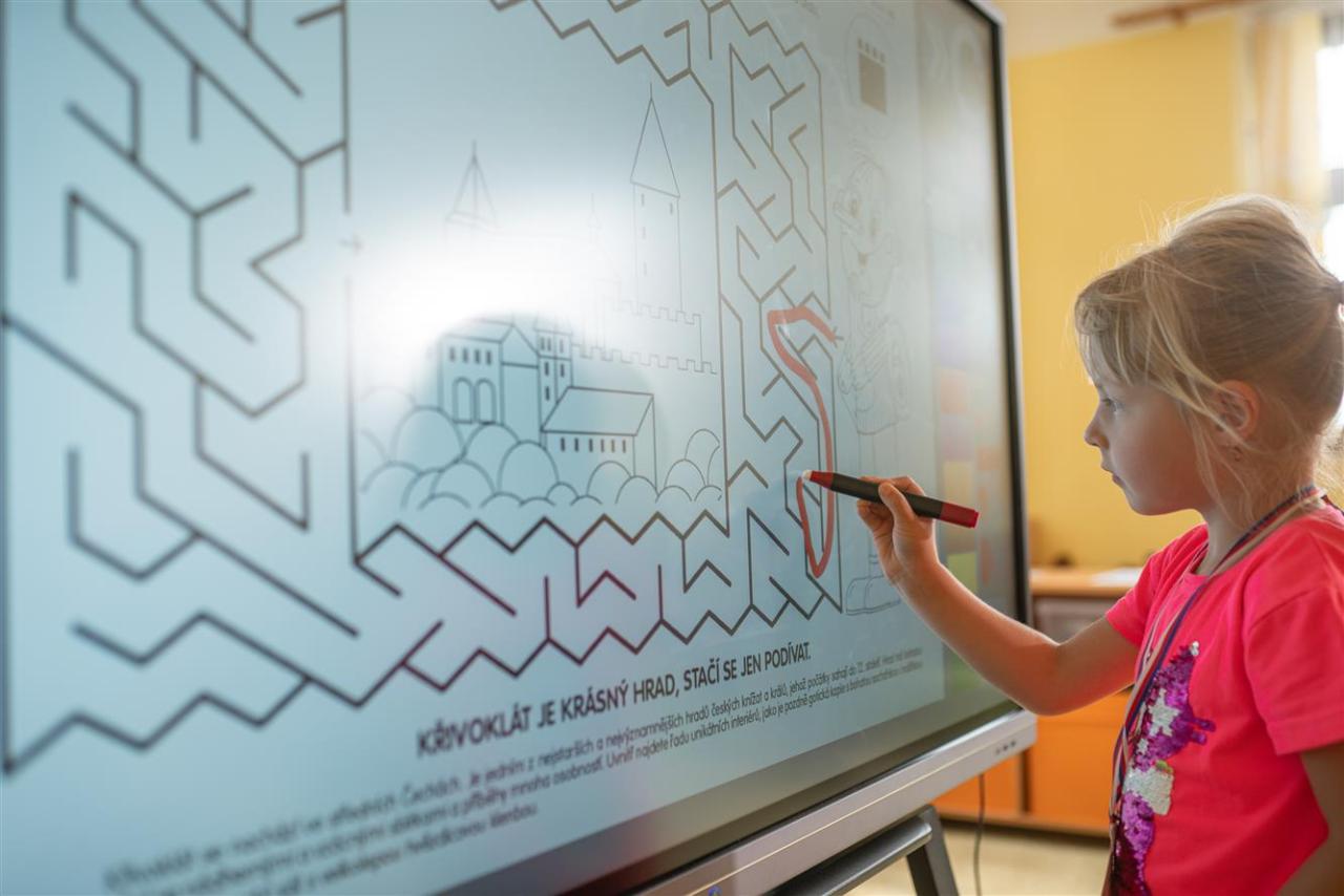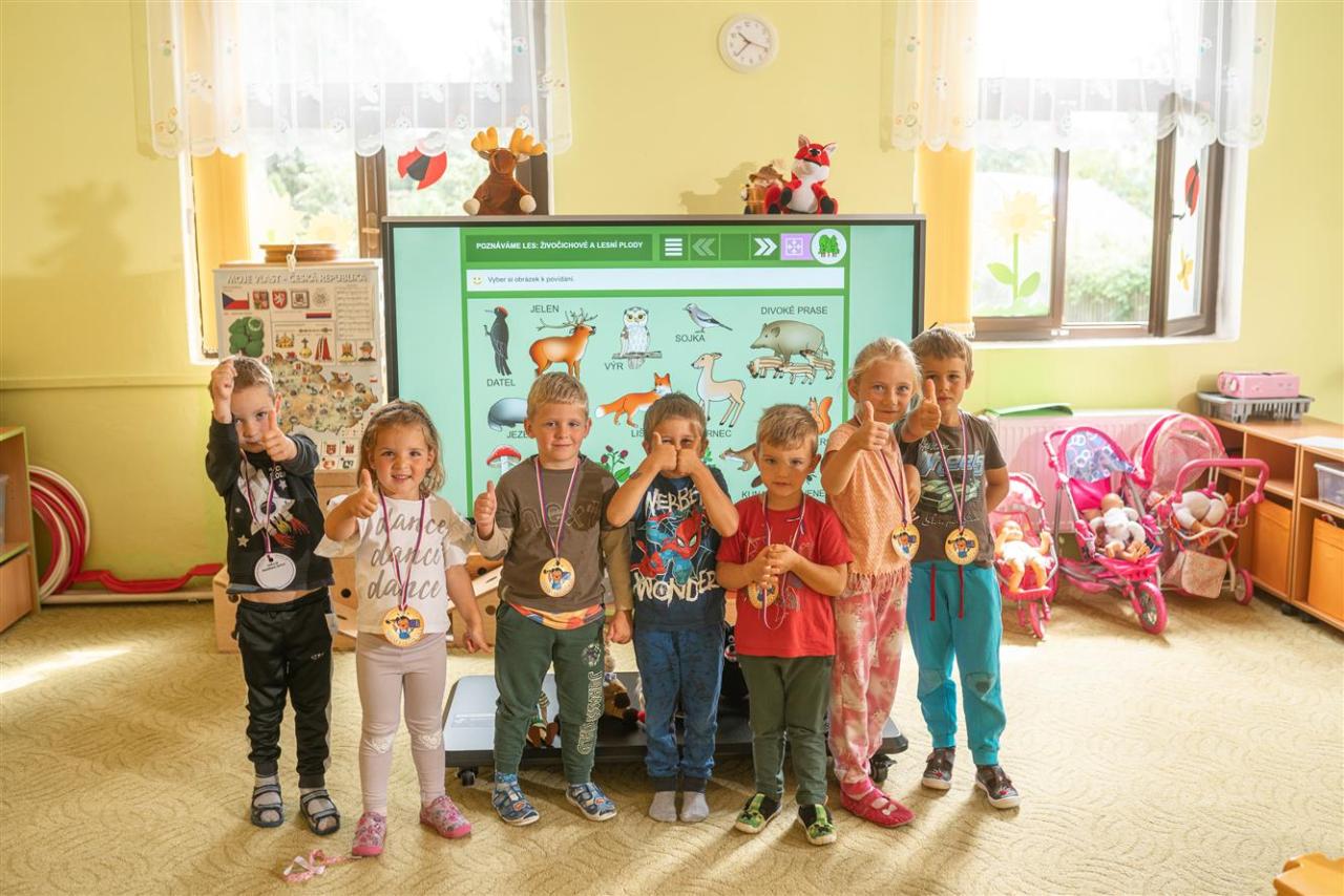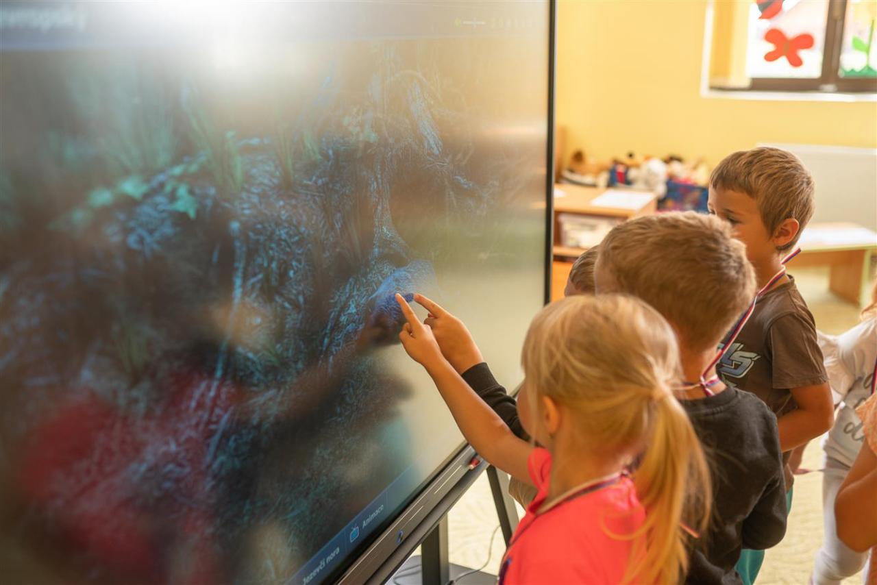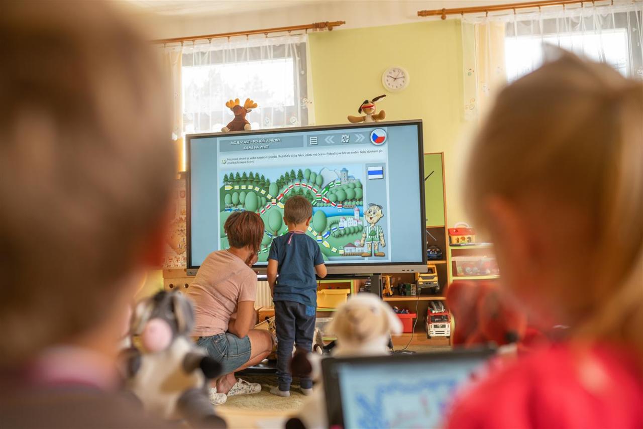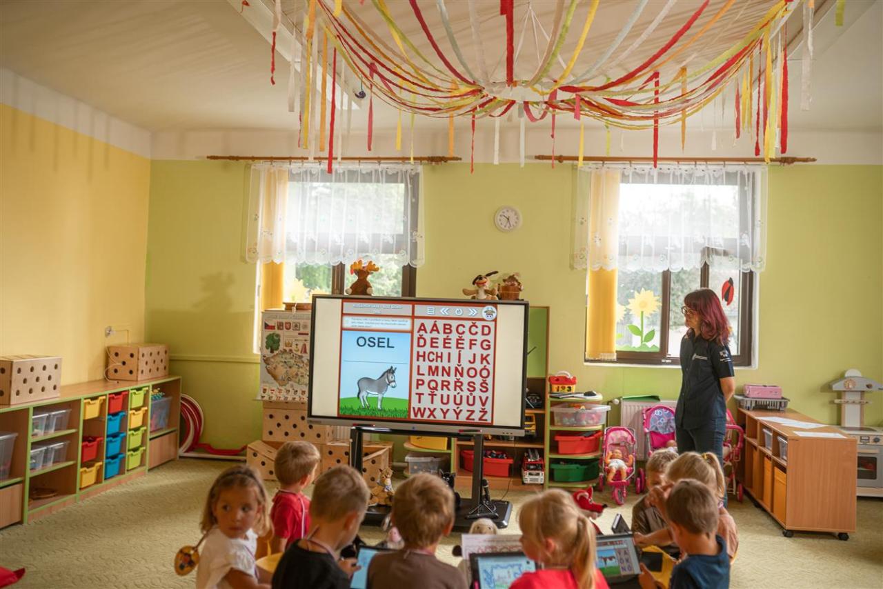Protože jsme pracovali na nové interaktivní tabuli Multiboard, kterou jsme pořídili do MŠ. Děti si na ní procvičí zrakové a sluchové vnímání, pravolevou orientaci, procvičí si matematickou a čtenářskou pregramotnost a také si mohou na velké tabuli volně kreslit. Jejich výtvory můžeme i vytisknout a mohou sí je nechat na památku. Práce s tabulí je zanesena ve vzdělávacím programu MŠ jednou týdně a to v rámci digitálního vzdělávání.