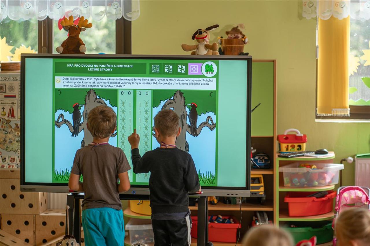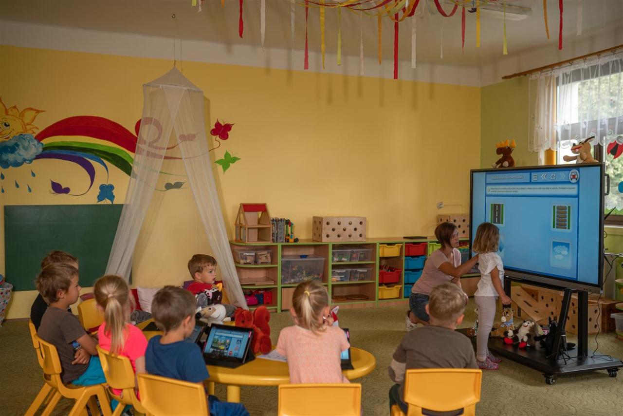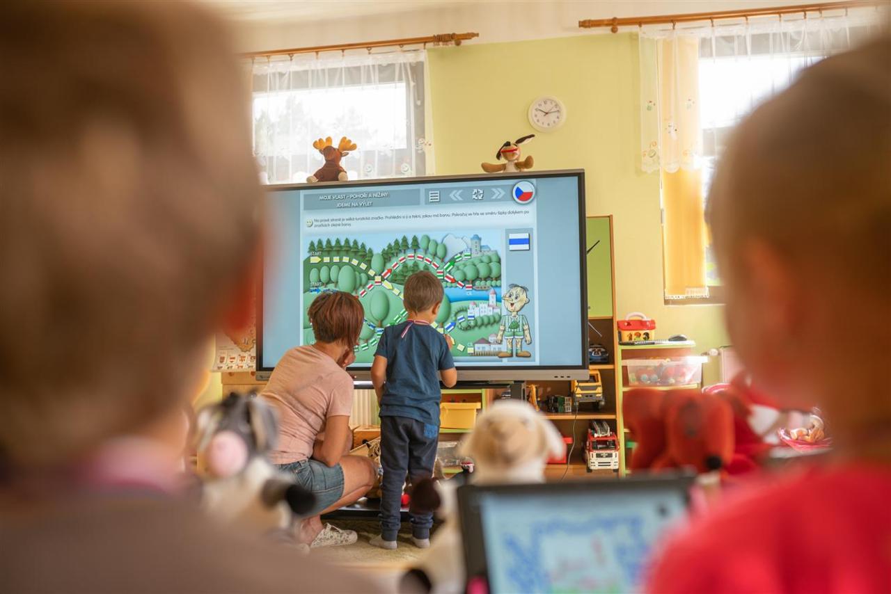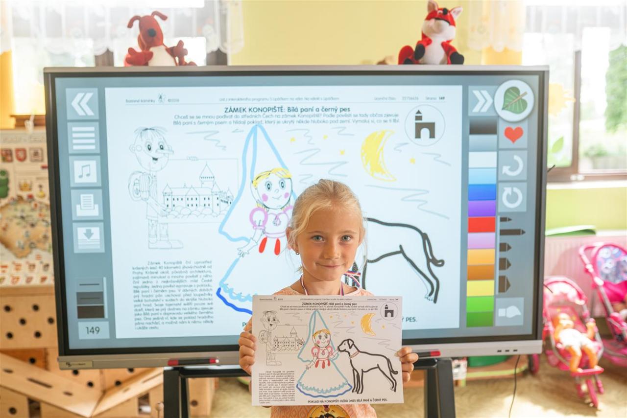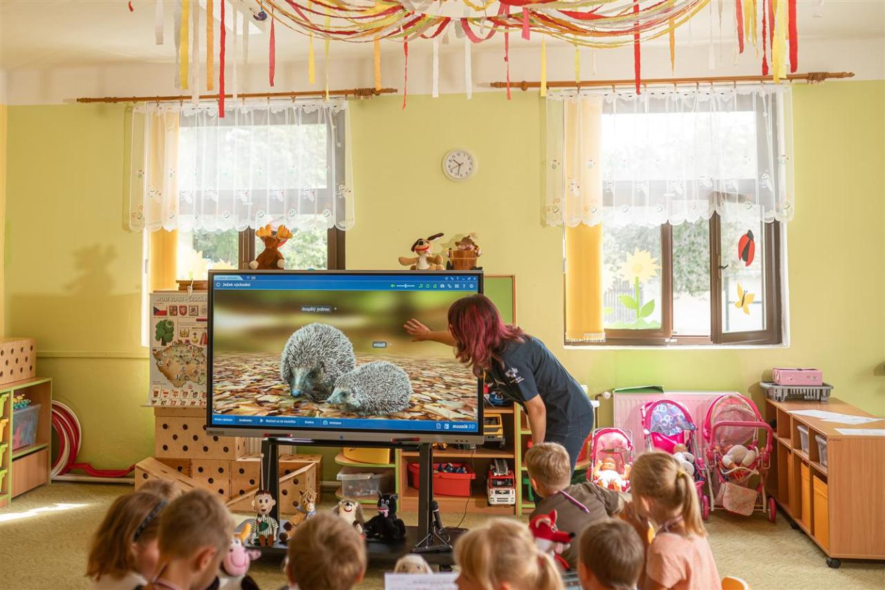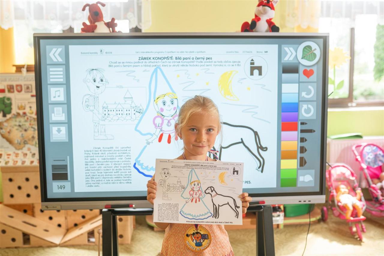 Protože jsme pracovali na nové interaktivní tabuli Multiboard, kterou jsme pořídili do MŠ. Děti si na ní procvičí zrakové a sluchové vnímání, pravolevou orientaci, procvičí si matematickou a čtenářskou pregramotnost a také si mohou na velké tabuli volně kreslit. Jejich výtvory můžeme i vytisknout a mohou sí je nechat na památku. Práce s tabulí je zanesena ve vzdělávacím programu MŠ jednou týdně a to v rámci digitálního vzdělávání.