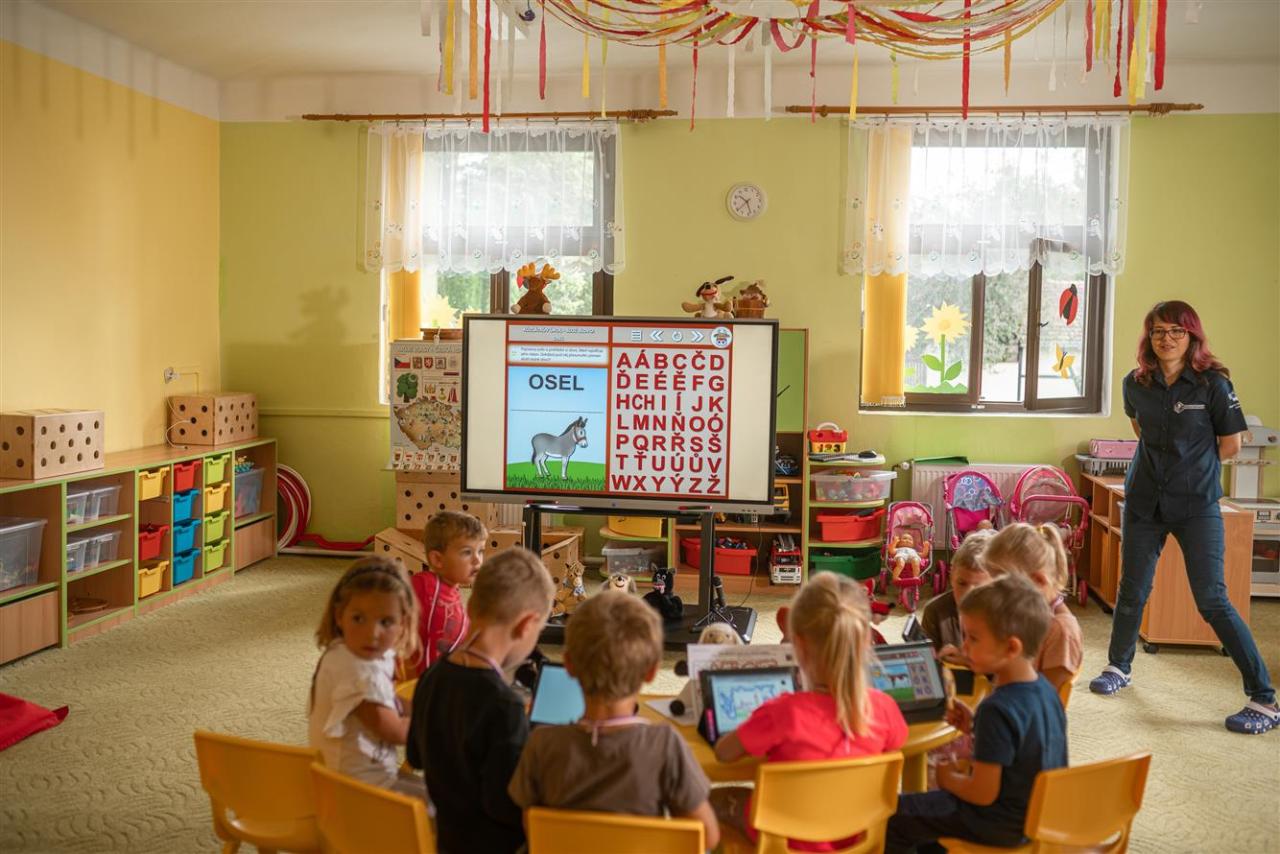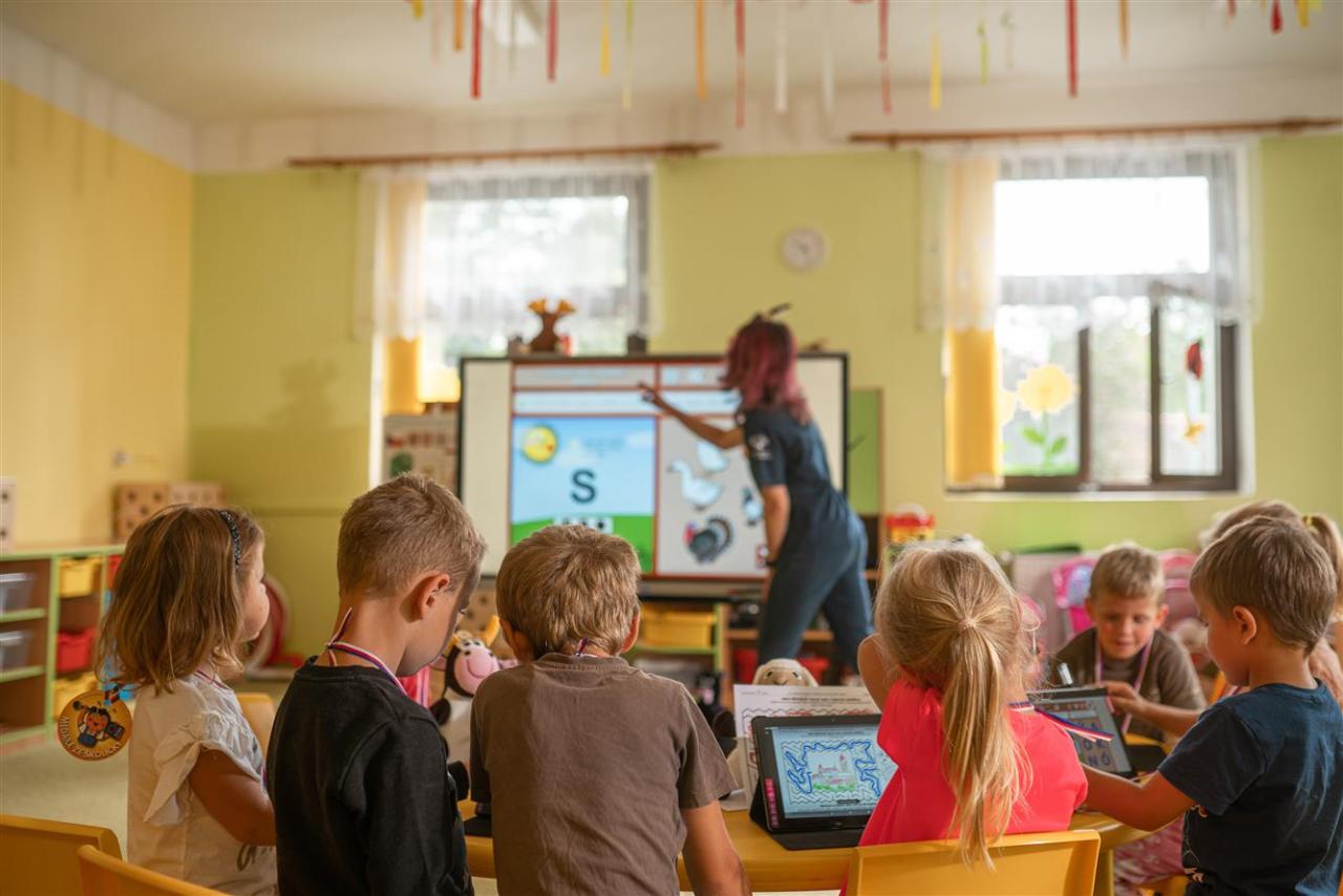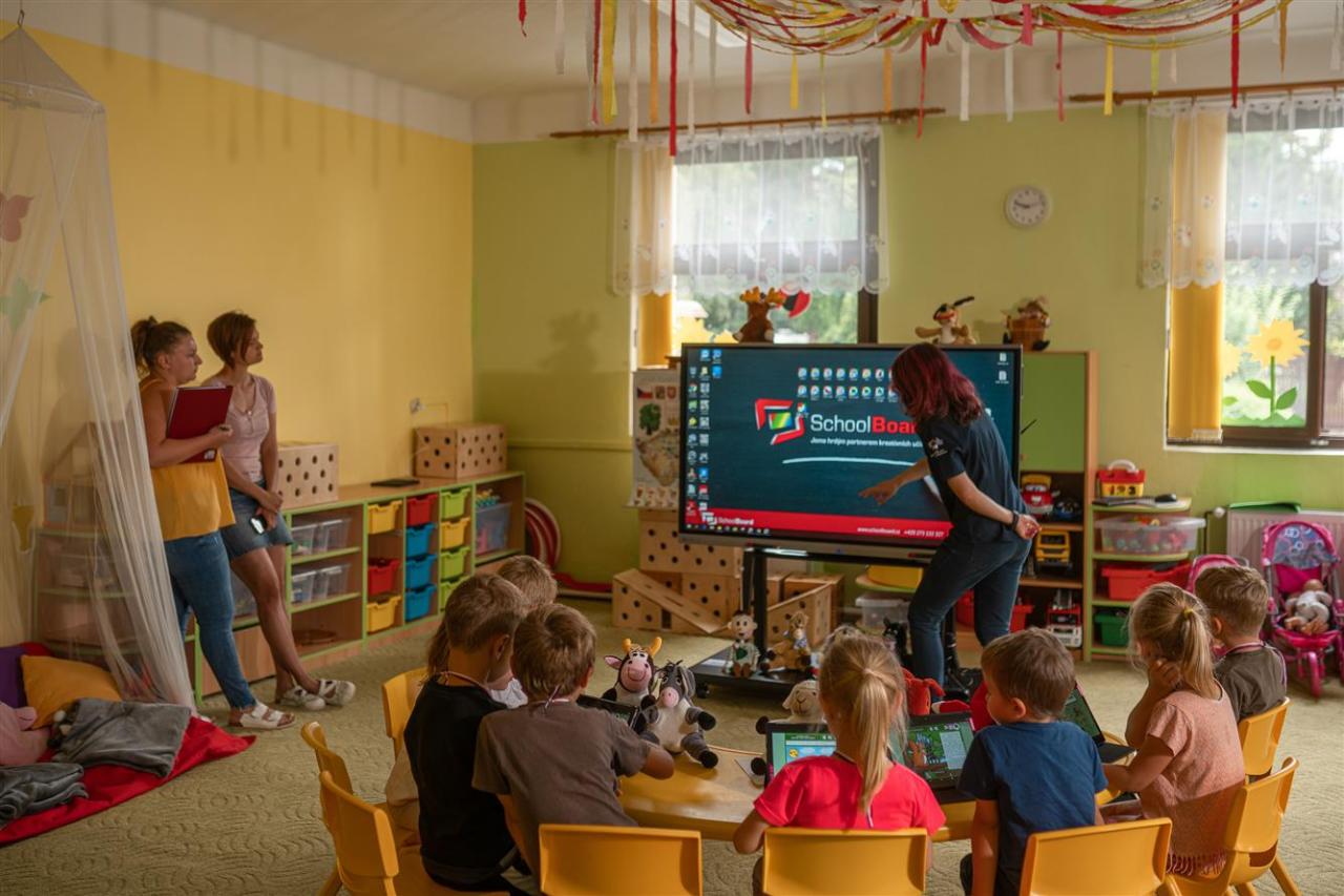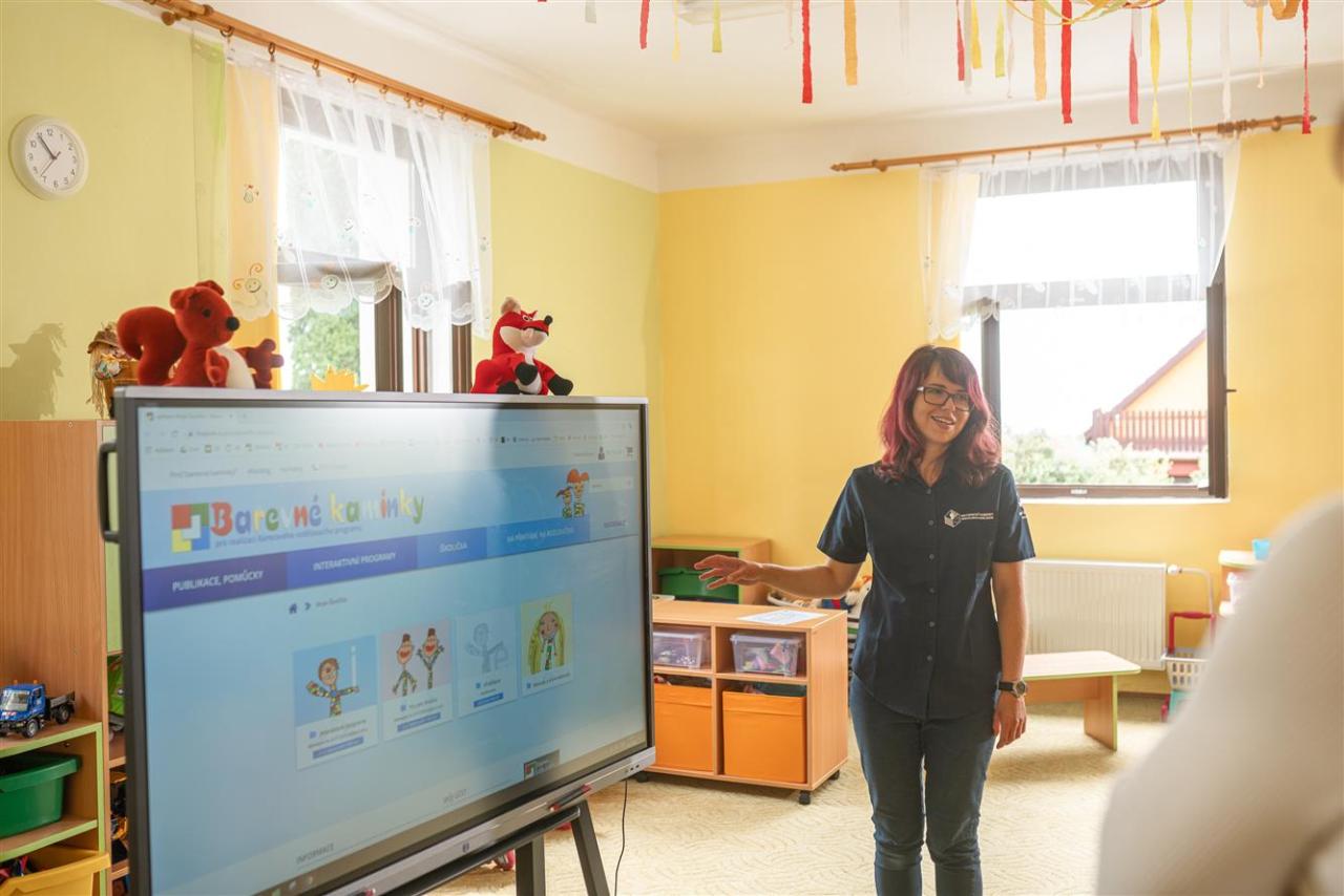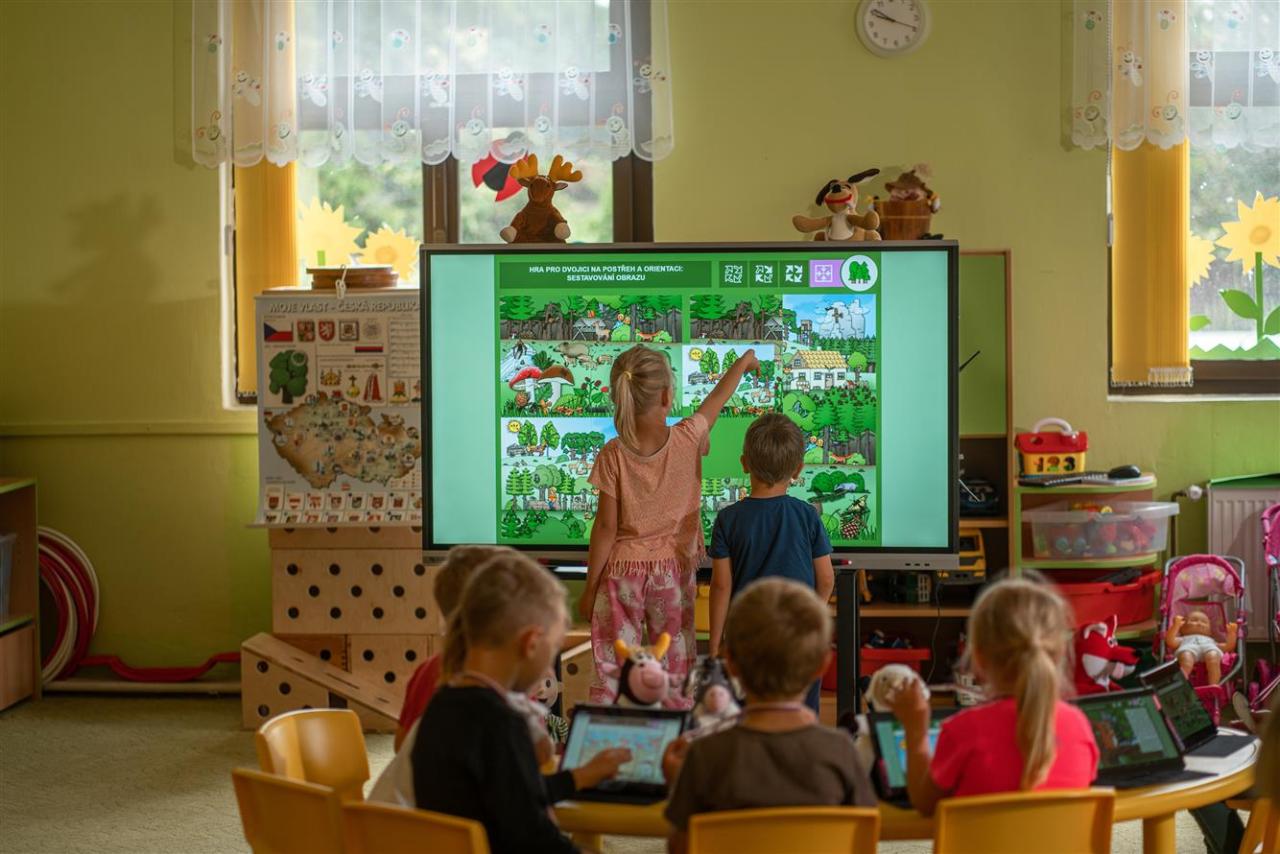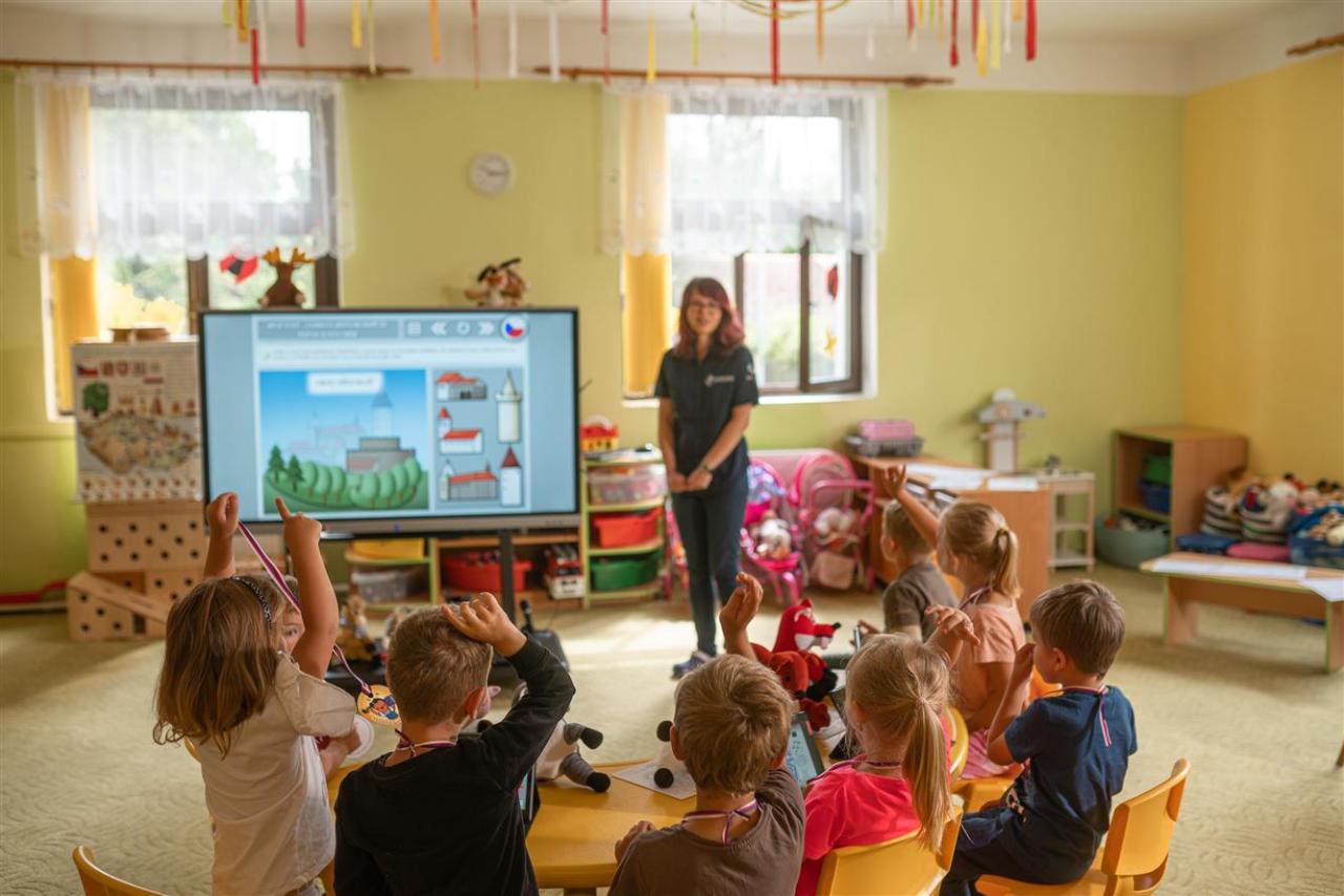 Protože jsme pracovali na nové interaktivní tabuli Multiboard, kterou jsme pořídili do MŠ. Děti si na ní procvičí zrakové a sluchové vnímání, pravolevou orientaci, procvičí si matematickou a čtenářskou pregramotnost a také si mohou na velké tabuli volně kreslit. Jejich výtvory můžeme i vytisknout a mohou sí je nechat na památku. Práce s tabulí je zanesena ve vzdělávacím programu MŠ jednou týdně a to v rámci digitálního vzdělávání.