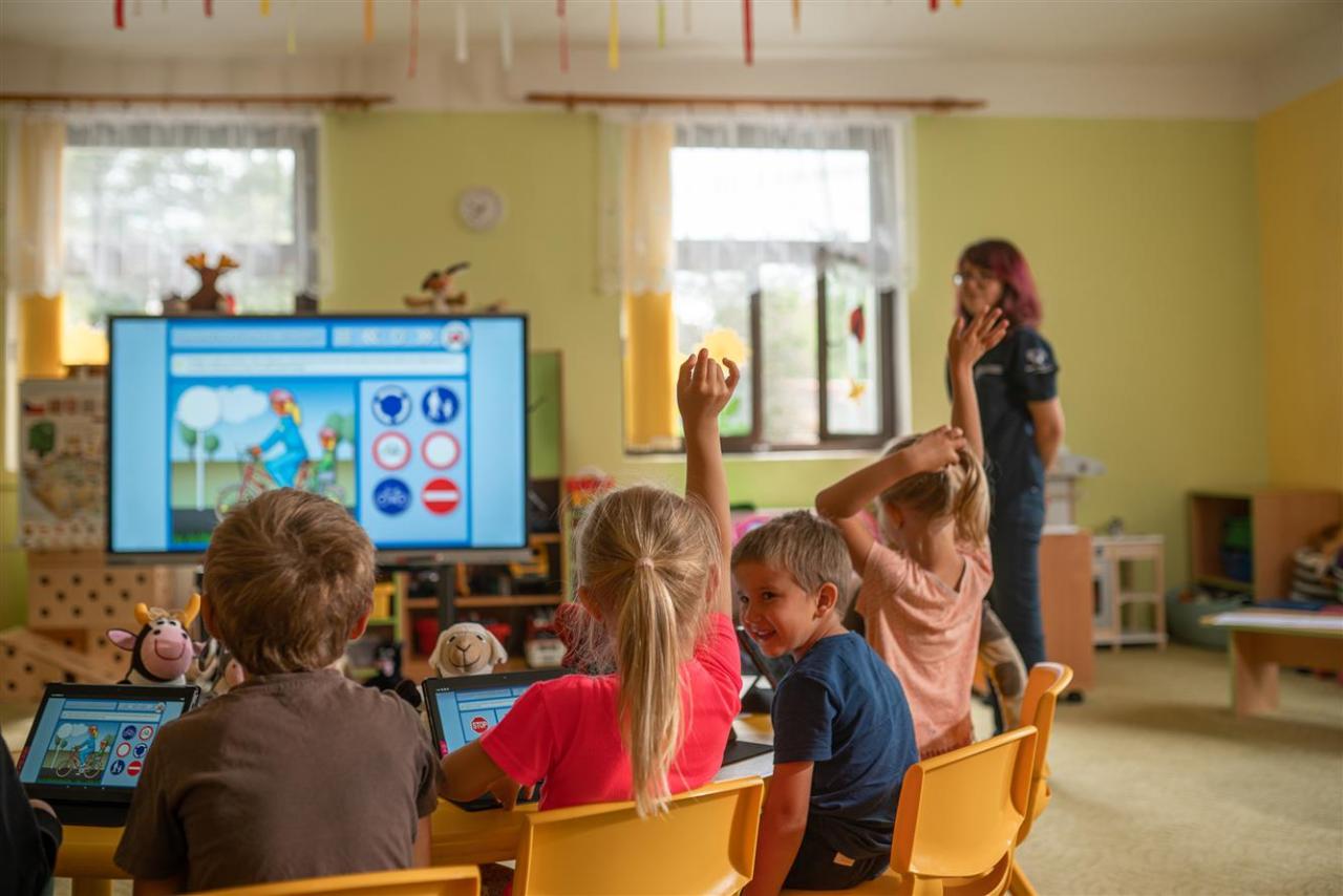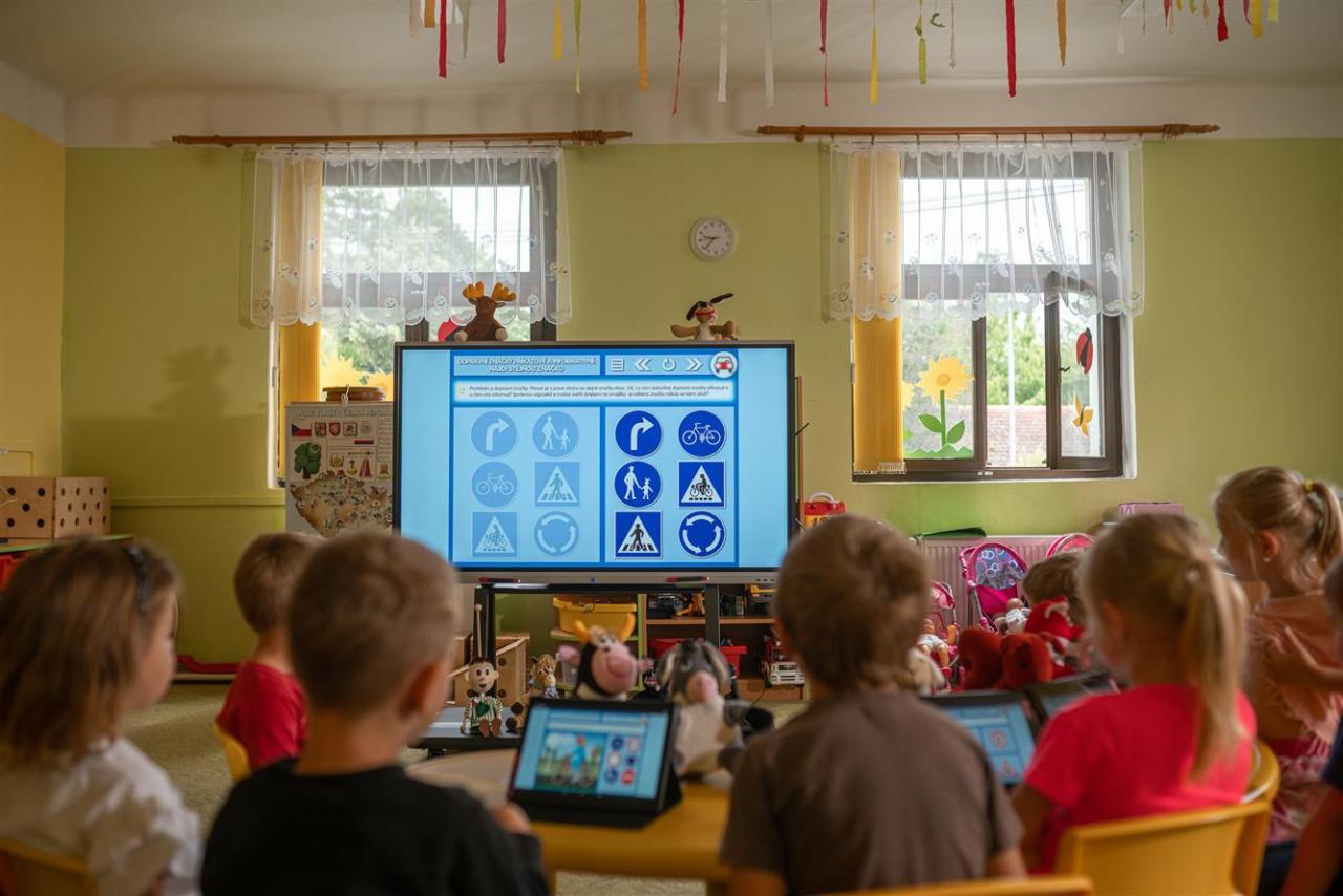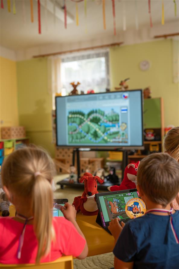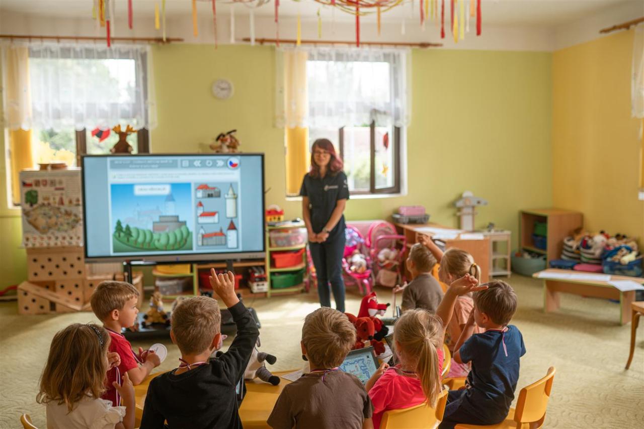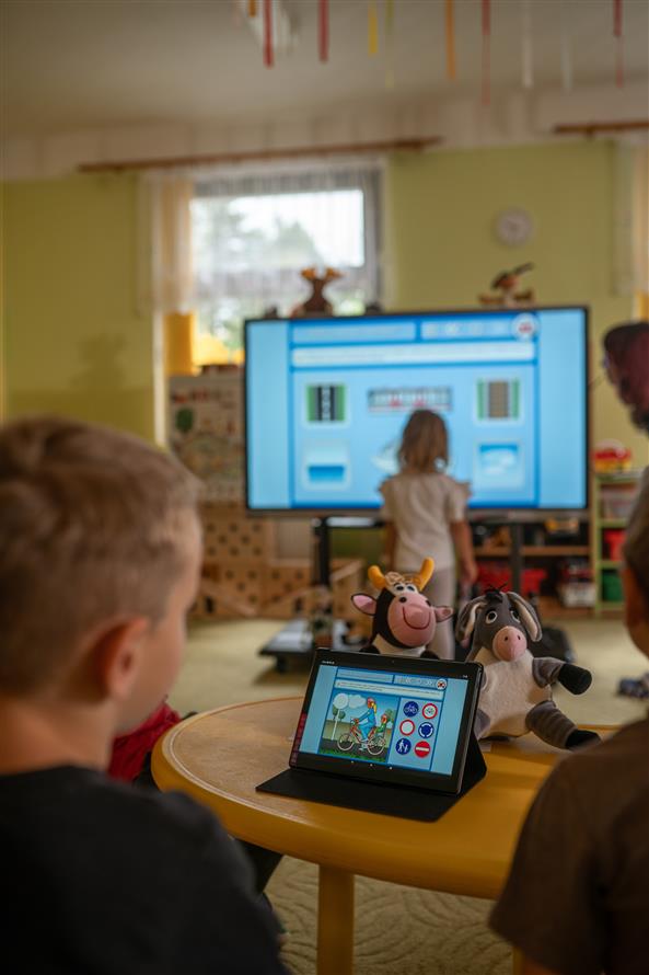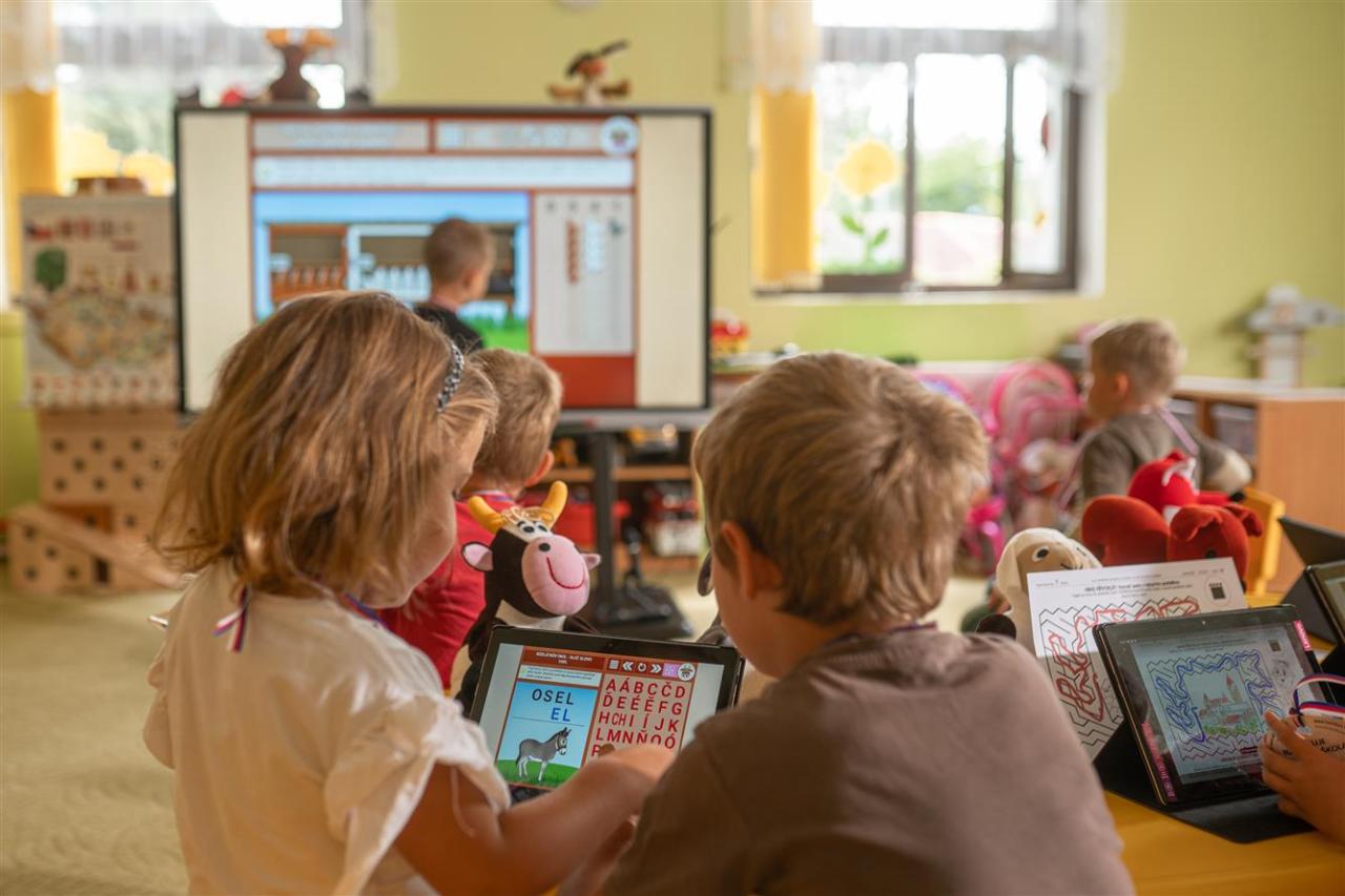 Protože jsme pracovali na nové interaktivní tabuli Multiboard, kterou jsme pořídili do MŠ. Děti si na ní procvičí zrakové a sluchové vnímání, pravolevou orientaci, procvičí si matematickou a čtenářskou pregramotnost a také si mohou na velké tabuli volně kreslit. Jejich výtvory můžeme i vytisknout a mohou sí je nechat na památku. Práce s tabulí je zanesena ve vzdělávacím programu MŠ jednou týdně a to v rámci digitálního vzdělávání.