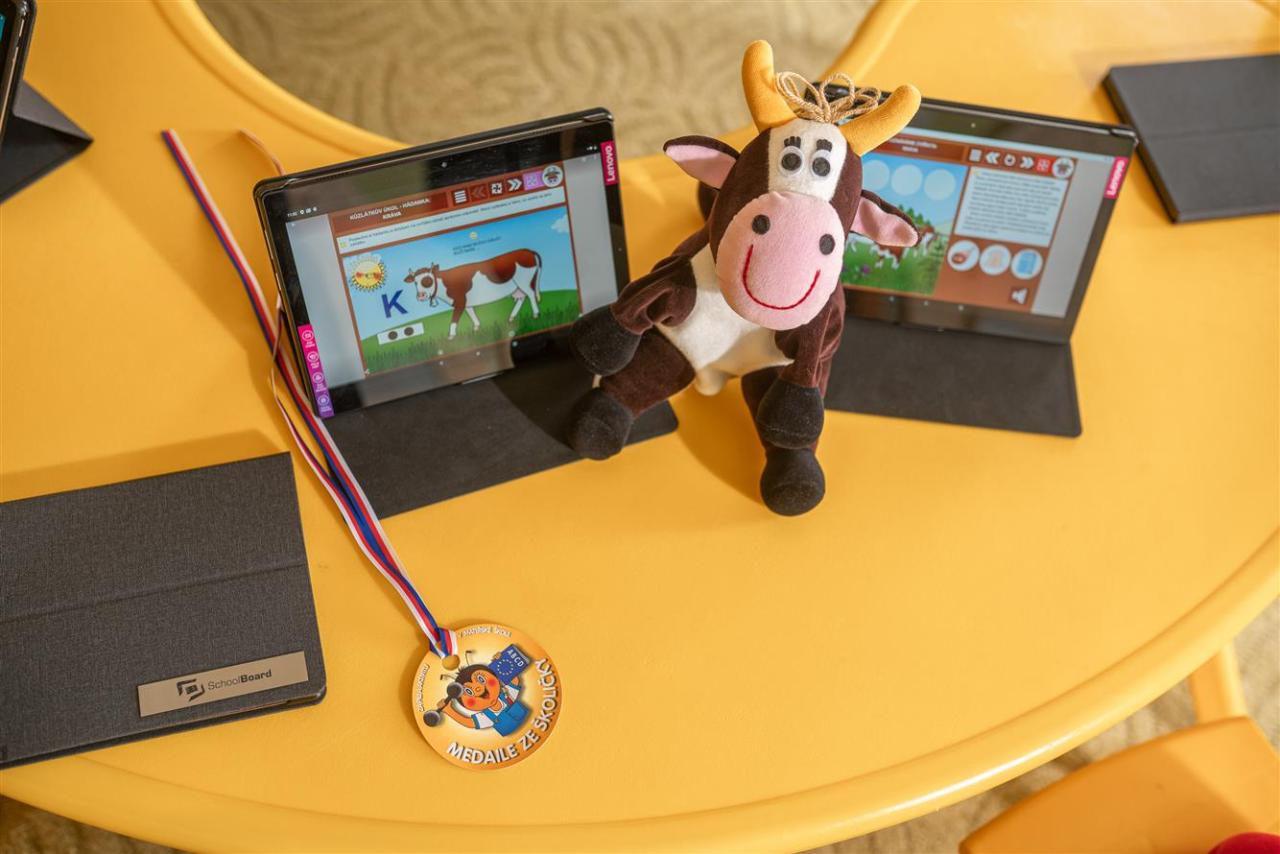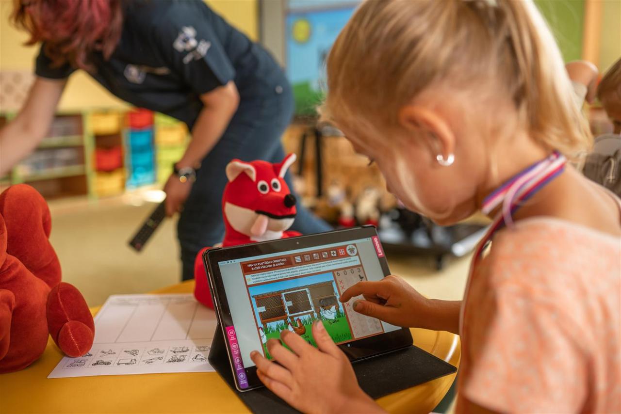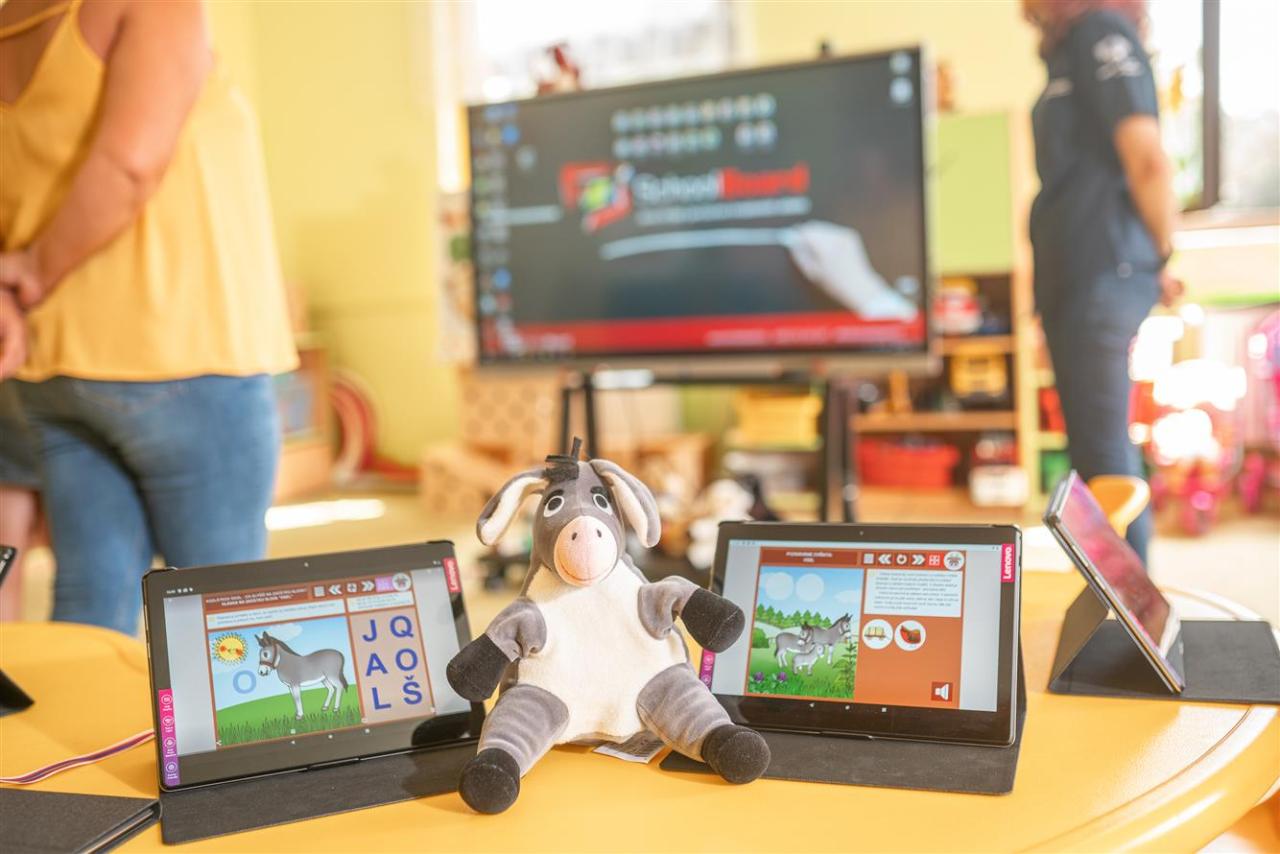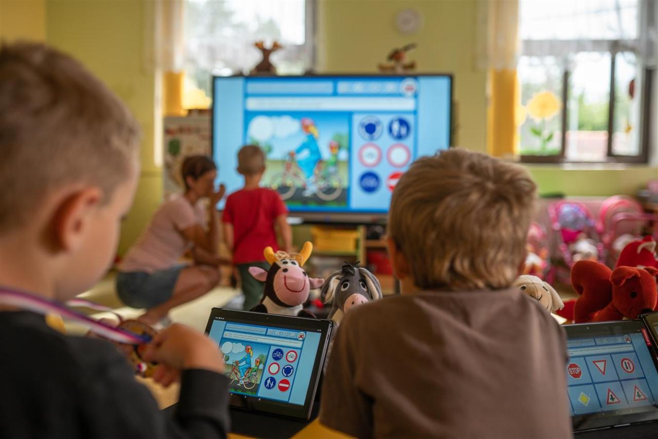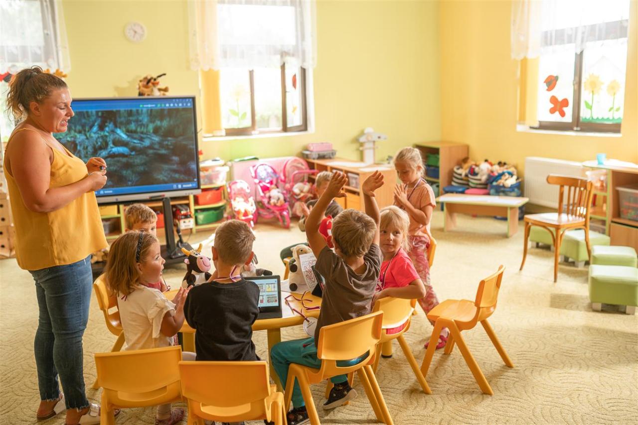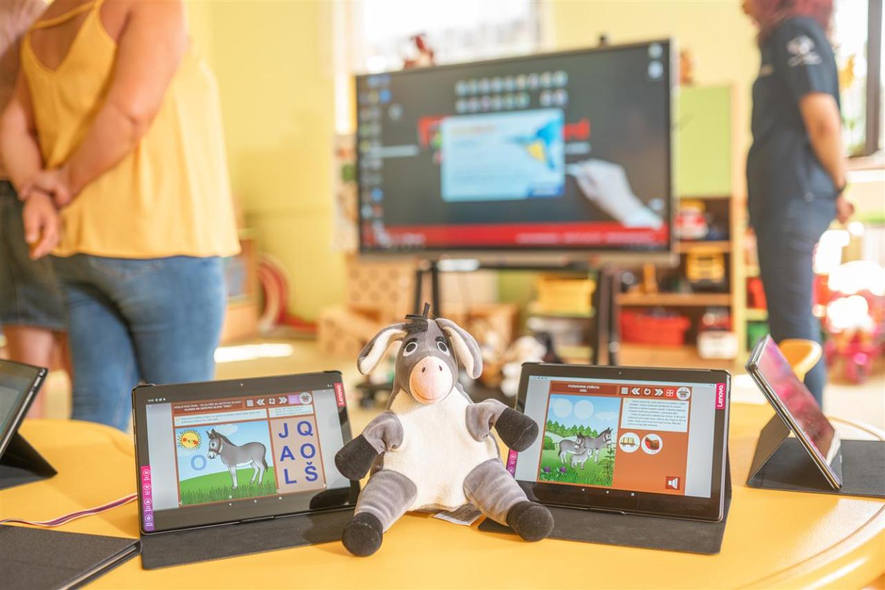 Protože jsme pracovali na nové interaktivní tabuli Multiboard, kterou jsme pořídili do MŠ. Děti si na ní procvičí zrakové a sluchové vnímání, pravolevou orientaci, procvičí si matematickou a čtenářskou pregramotnost a také si mohou na velké tabuli volně kreslit. Jejich výtvory můžeme i vytisknout a mohou sí je nechat na památku. Práce s tabulí je zanesena ve vzdělávacím programu MŠ jednou týdně a to v rámci digitálního vzdělávání.