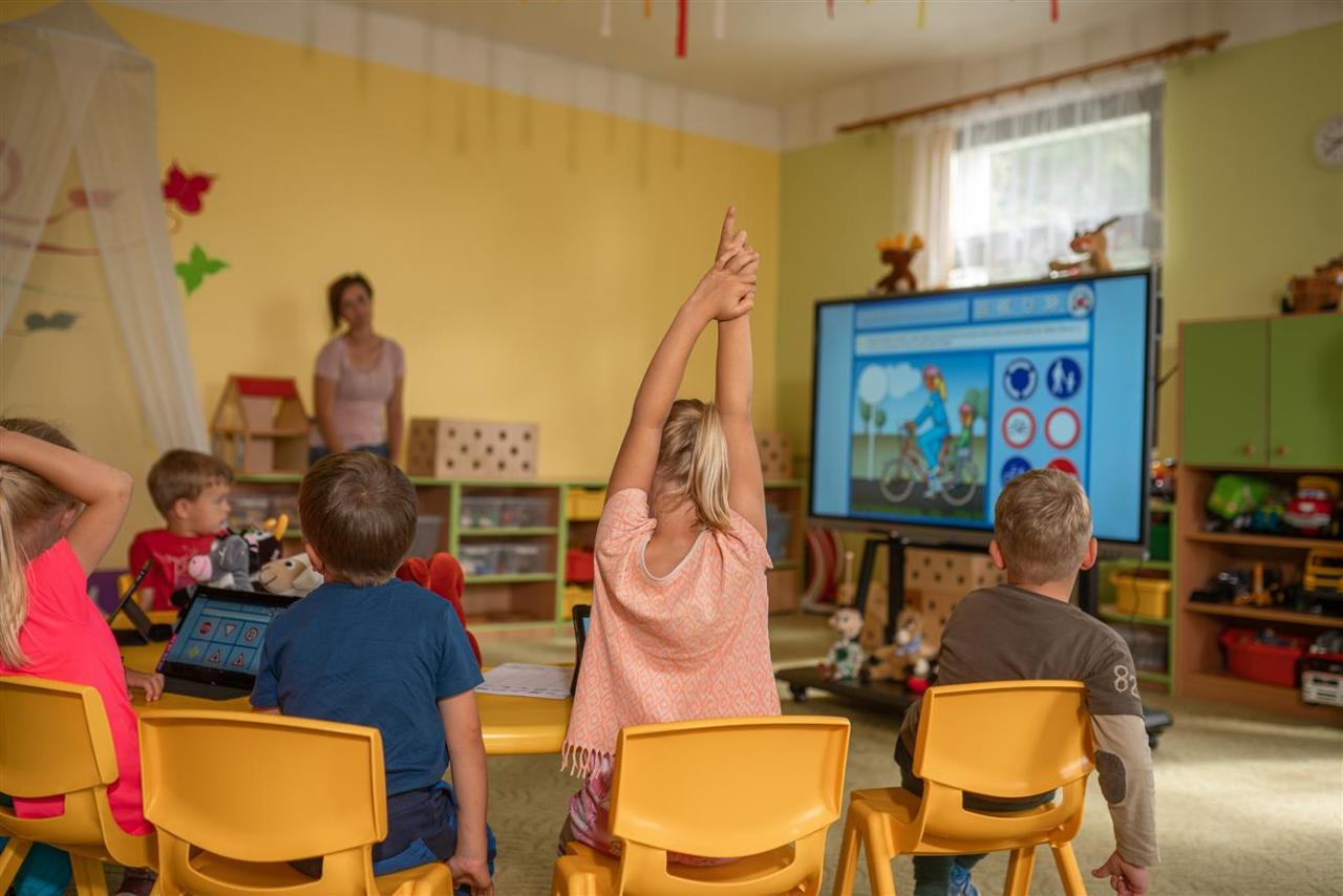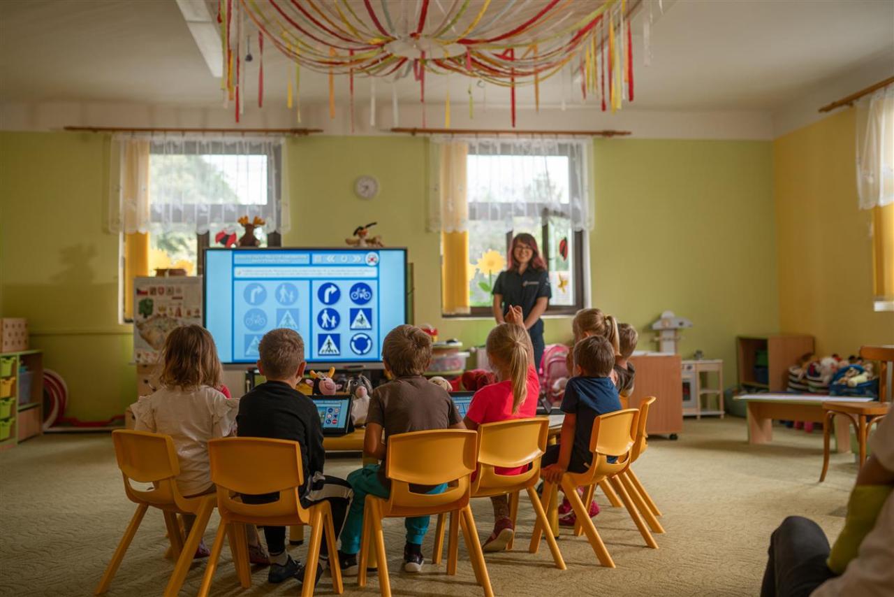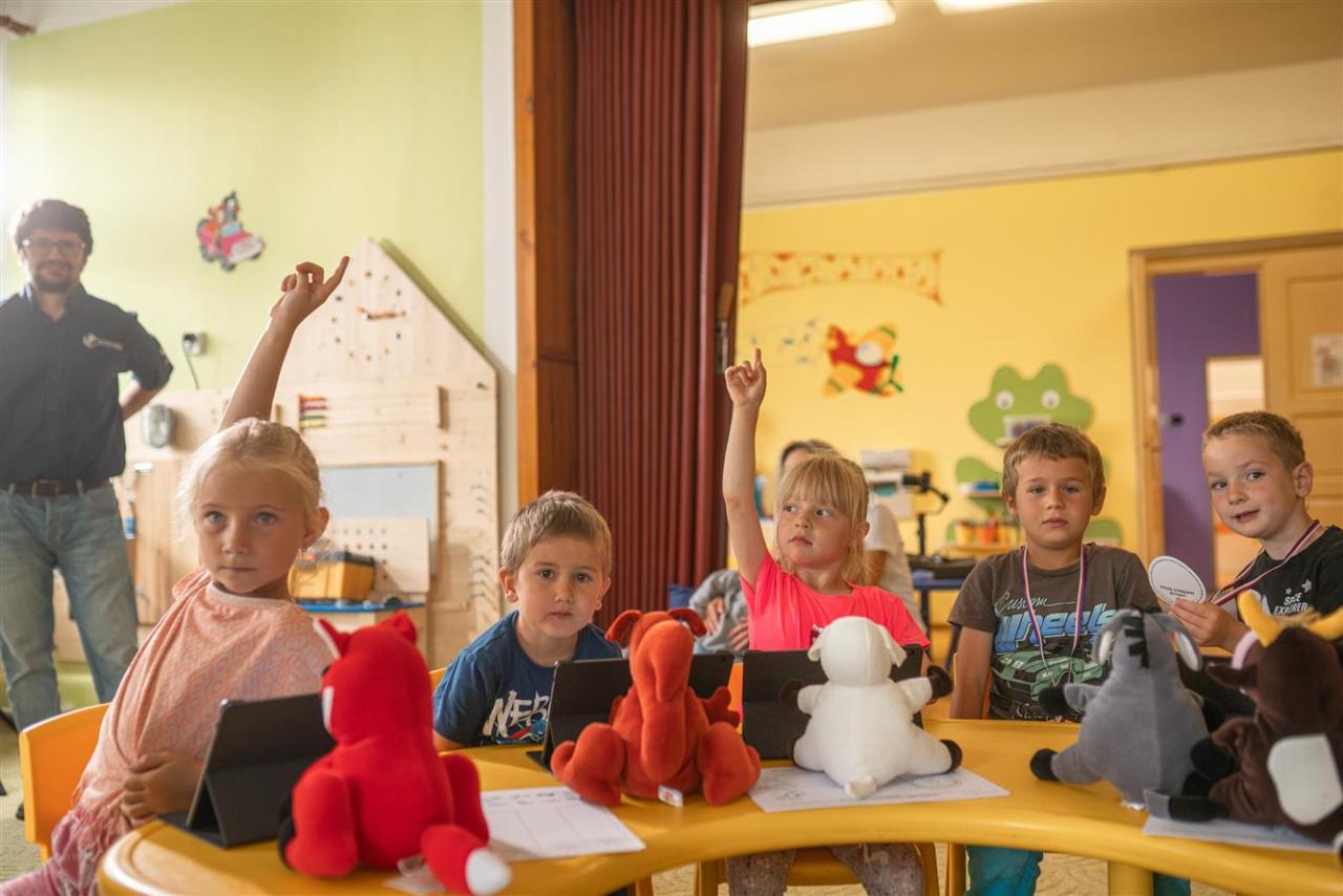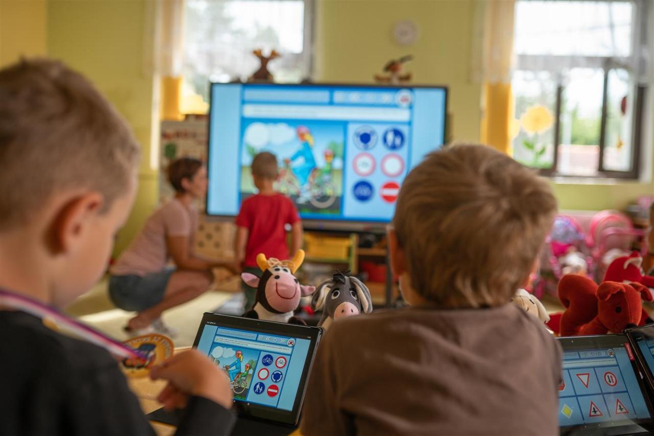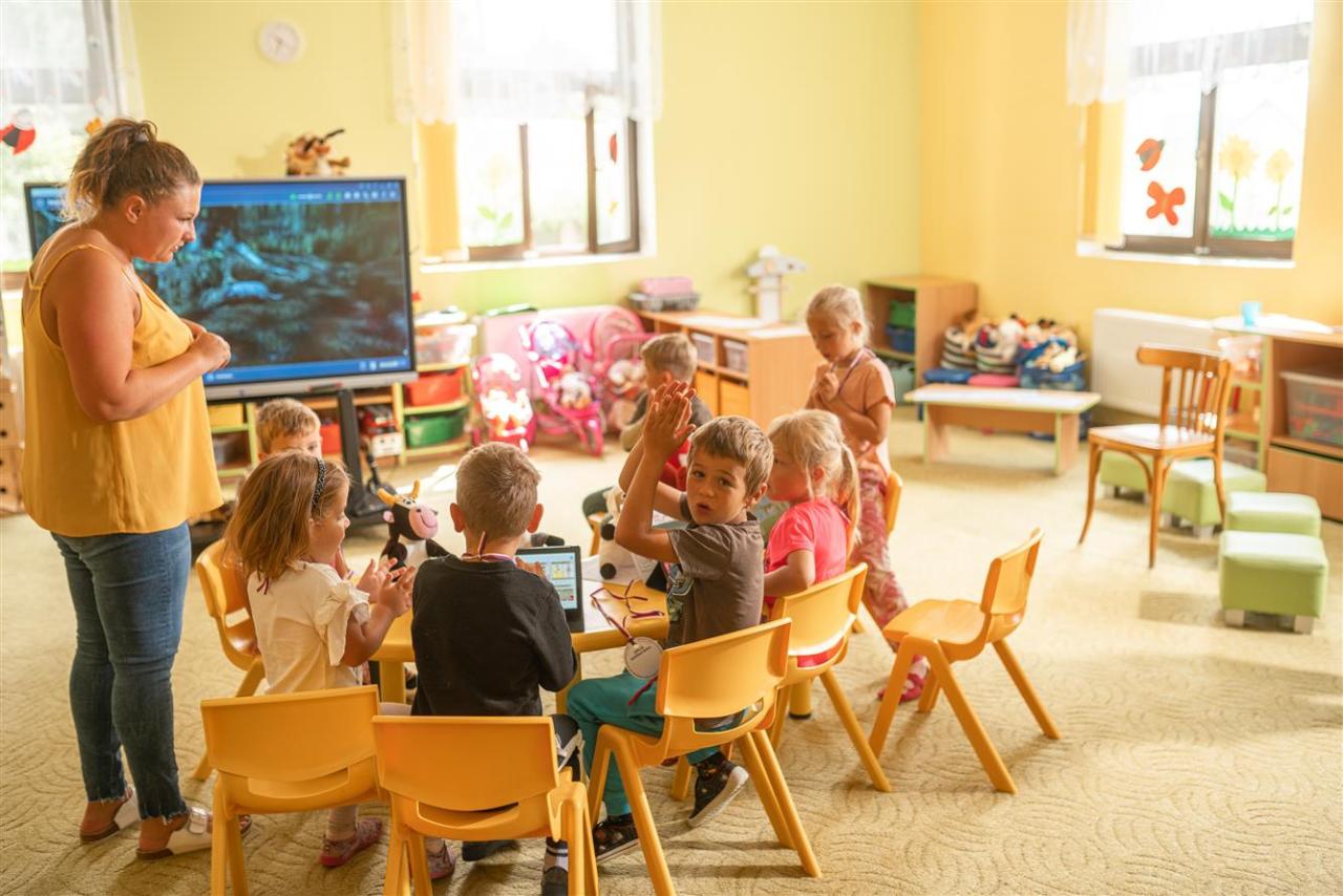 Protože jsme pracovali na nové interaktivní tabuli Multiboard, kterou jsme pořídili do MŠ. Děti si na ní procvičí zrakové a sluchové vnímání, pravolevou orientaci, procvičí si matematickou a čtenářskou pregramotnost a také si mohou na velké tabuli volně kreslit. Jejich výtvory můžeme i vytisknout a mohou sí je nechat na památku. Práce s tabulí je zanesena ve vzdělávacím programu MŠ jednou týdně a to v rámci digitálního vzdělávání.