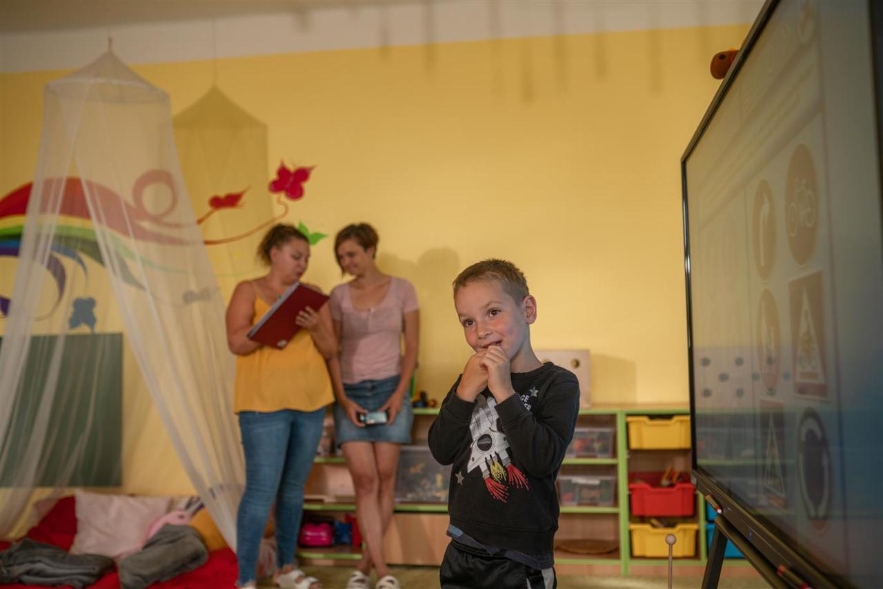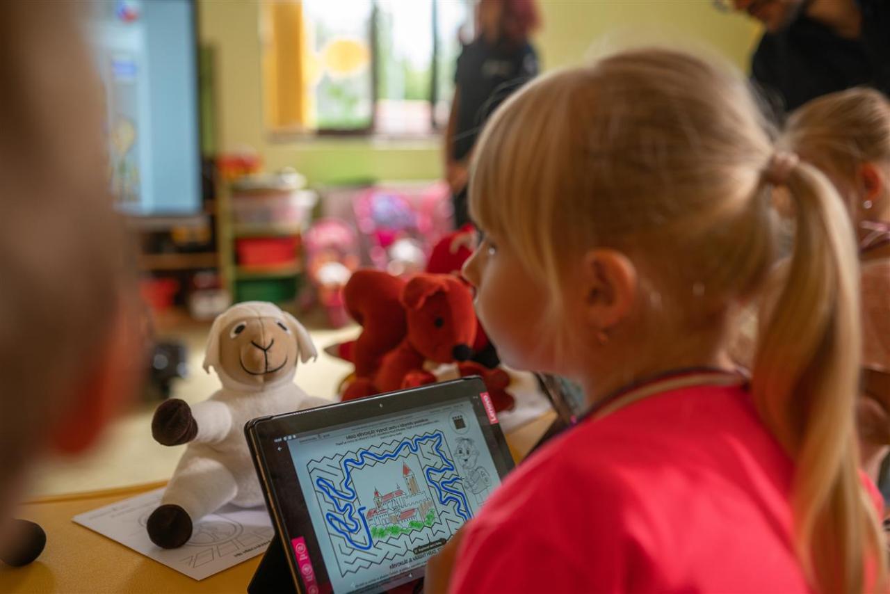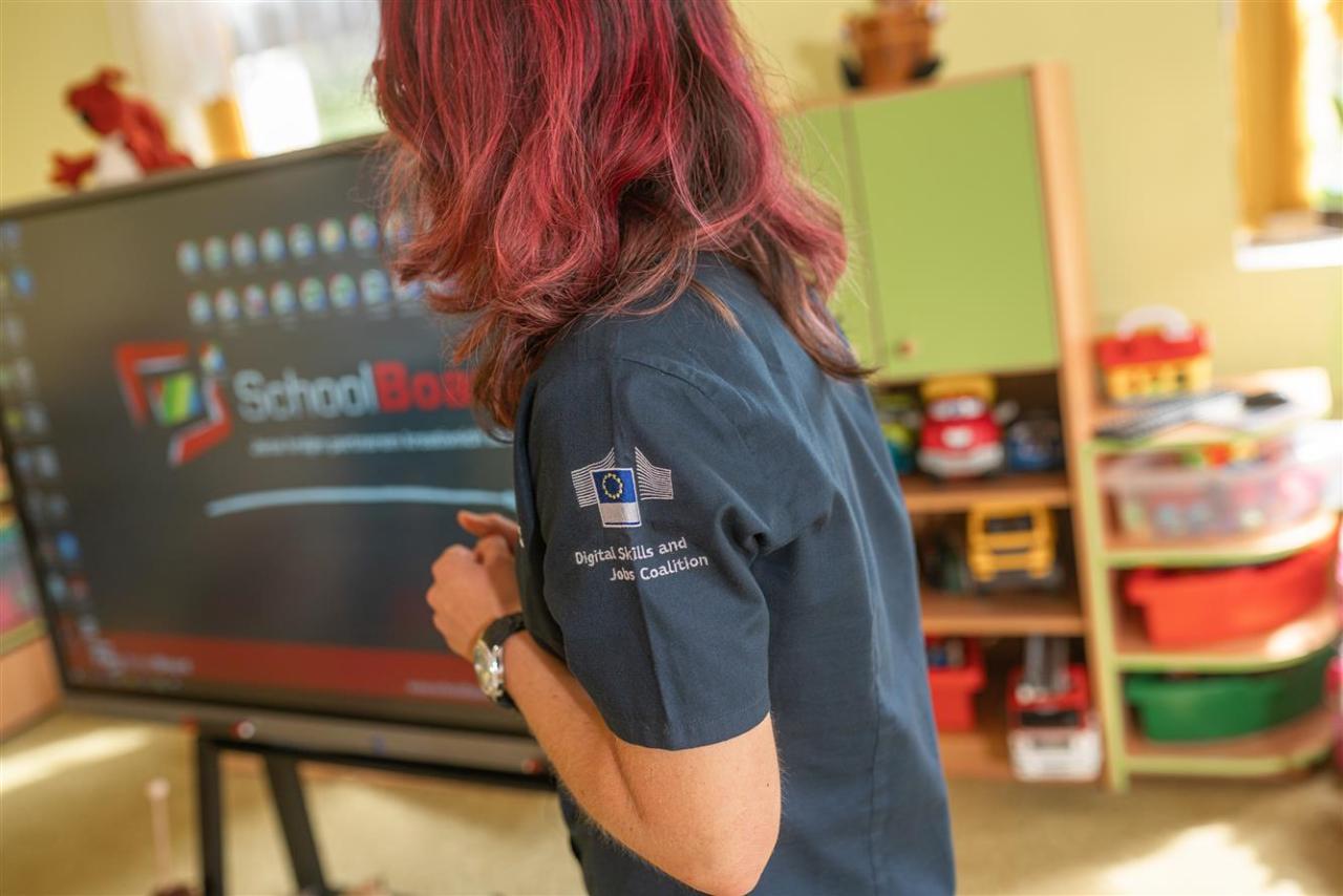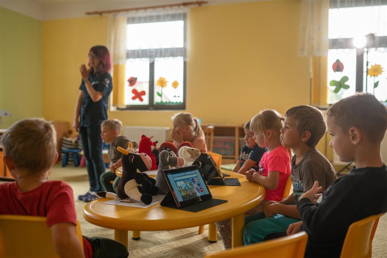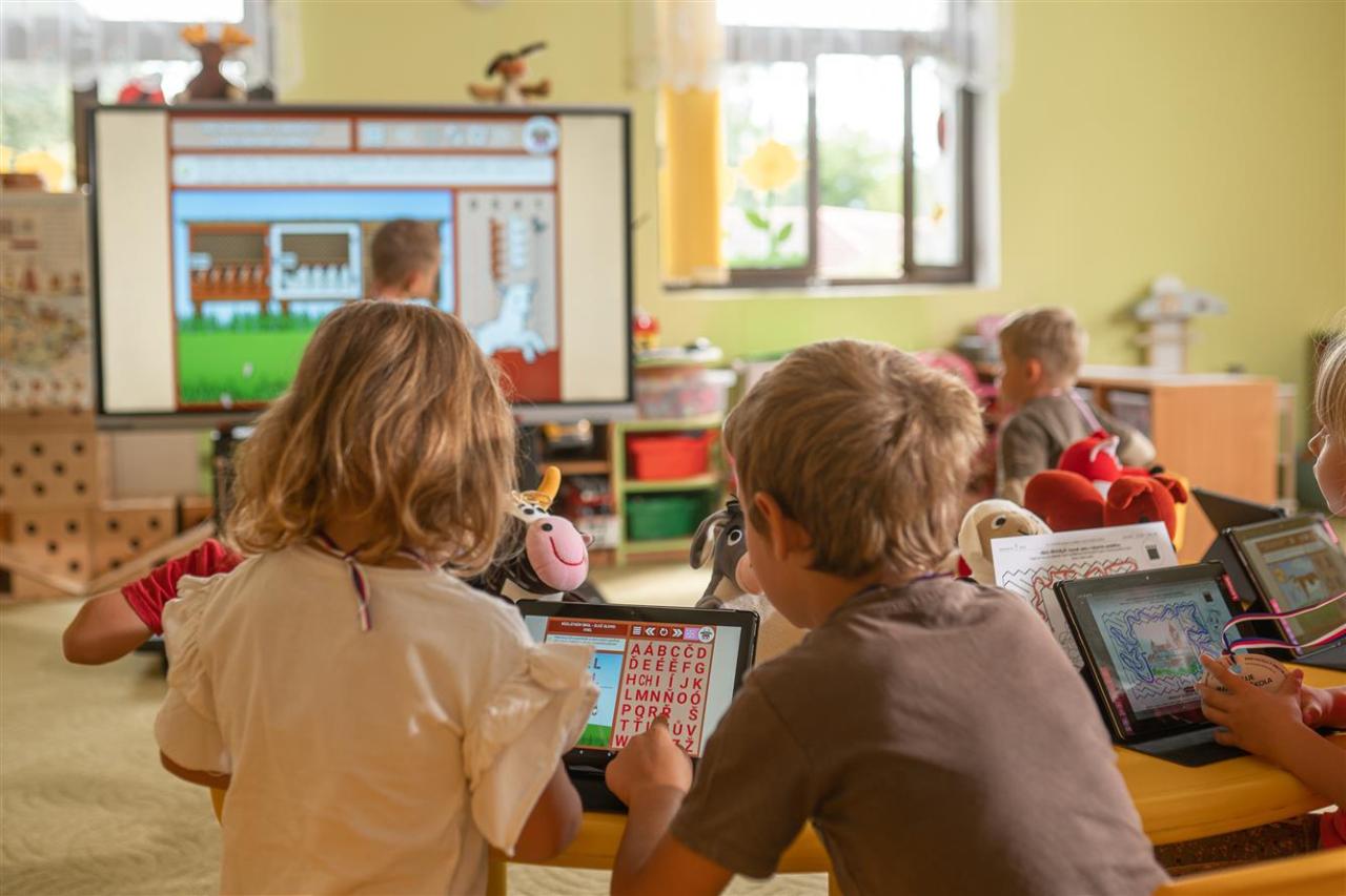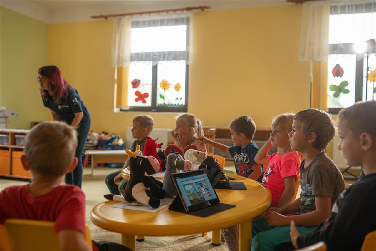 Protože jsme pracovali na nové interaktivní tabuli Multiboard, kterou jsme pořídili do MŠ. Děti si na ní procvičí zrakové a sluchové vnímání, pravolevou orientaci, procvičí si matematickou a čtenářskou pregramotnost a také si mohou na velké tabuli volně kreslit. Jejich výtvory můžeme i vytisknout a mohou sí je nechat na památku. Práce s tabulí je zanesena ve vzdělávacím programu MŠ jednou týdně a to v rámci digitálního vzdělávání.