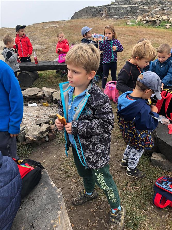 Je to naše místní dominanta a děti se na něj dívají ze zahrádky u MŠ. Ráno jsme se vydali na cestu, porozhlédli se po lese, sbírali přírodniny a také si poslechli, kdo na hradě žil. Děti se zaposlouchaly do zvuků lesa. Nahoře na nás bohužel čekala mlha místo výhledu, ale nám to nevadilo. Procházka se zdařila i přes mírnou nepřízeň počasí. Děti moc chválíme, že výstup statečně zvládly.