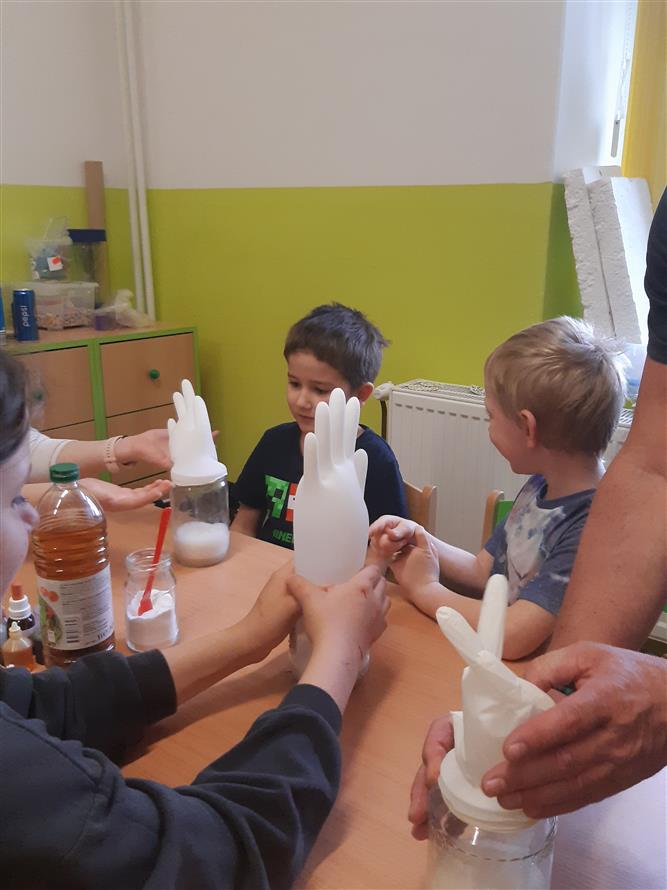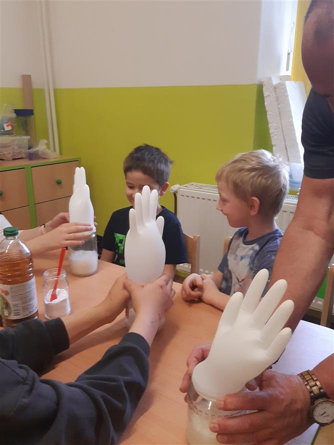 V dubnu nás navštívili zástupcí ZŠ Ploskovice s žáky, aby svou školu představili před zápisy do ZŠ. Děti si vyrobily jarní výrobky, vyzkoušely fyzikální pokusy a udělaly několik pracovních listů na grafomotorické cviče ní.